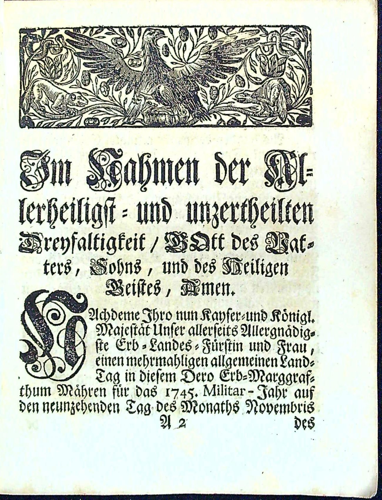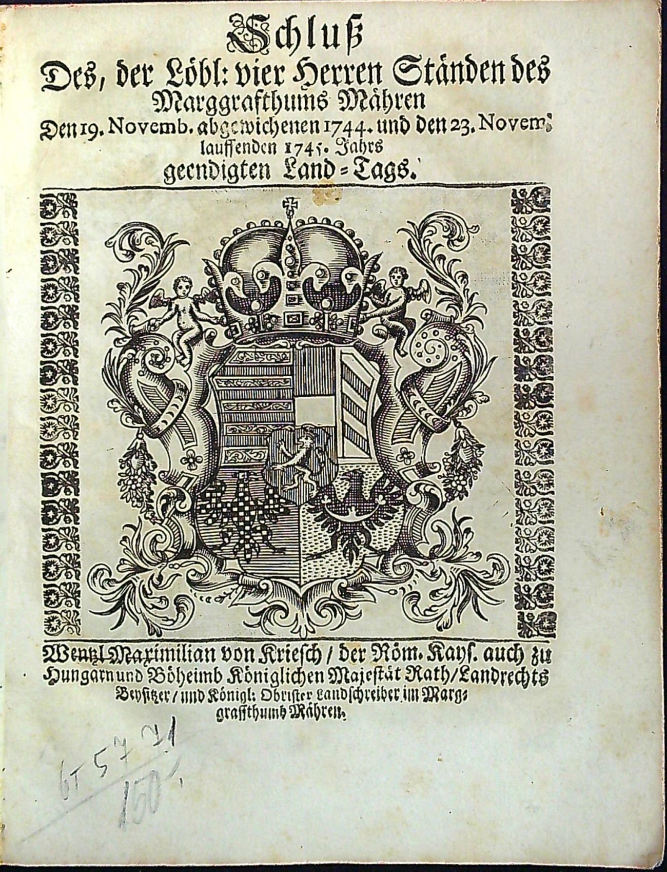Schluss Des, der Löbl. vier Herren Ständen des Marggrafthums Mähren Den 19. November. abgewischenen 1744. und den 23. Novem: laussenden 1745 Jahrs geendigten Land´Tags.
