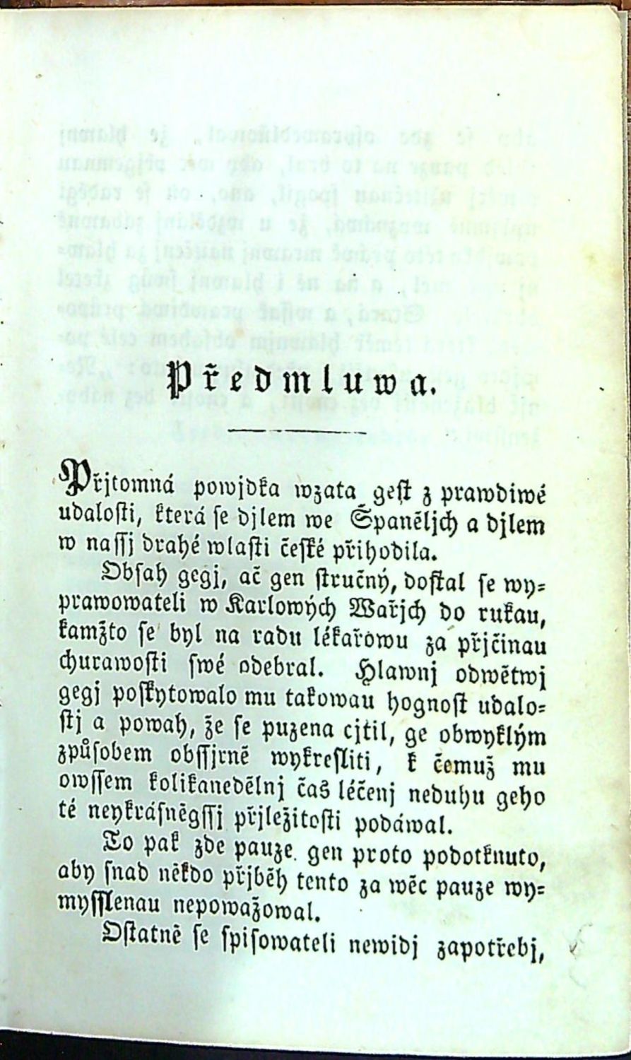 Tištěno švabachem. - Kartonová vazba s koženým hřbetem z 20. století, na předním přídeští nalepeno ex libris "Jaroslav Jirásek sen.".
