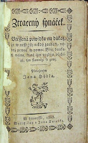 Ztracený synáček. Vtěssená powjdka na důkaz, že w nesstěstj nikdý zaufati, nýbrž pewně w pomoc Božj daufati máme, která čjm pozděgi přicházý, tjm slawněgi se gewj.