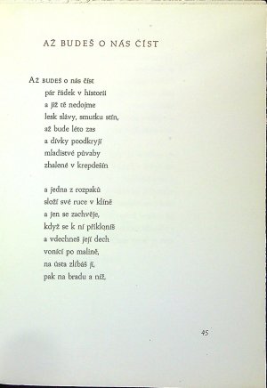 Na listu s názvem edice rkp. dedikace zeleným perem "Milému básníkovi Jos. Palivcovi srdečně Jar. Seifert 1.IX. 45".