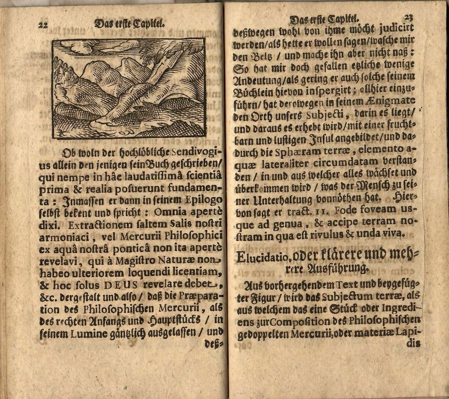 Kopp II, 388; Duveen 545.<br>Německý text gotikou, latinský antikvou, signatury, stránkové kustody, živá záhlaví. Iniciály propletené úponky ve výši 2-4 řádků, pásové vlysy, viněty. V textu 13 dřevořezů v jednoduchém rámečku o rozměru cca 40 x 63 mm. <br>Kartonová vazba s pergamenovým hřbetem z počátku 20. století. Na titulním listu a v textu rkp. marginálie z 18. Století, na několika místech perem jméno jednoho z předchozích vlastníků knihy (Fučík). Pouze první část, druhá, která obsahuje Orthelliův komentář chybí.<br>Michael Sendivogius (Michal Sendivoj ze Skorska, 1566 Lukowica - 1636 Kravaře), byl polský šlechtic, alchymista, lékař a filosof. Působil též na dvoře Rudolfa II. v Praze, kde také roku 1604 vydal jednu ze svých alchymistických prací. Později působil v diplomatických službách ve Vídni a v Polsku. V době stavovského povstání zachoval věrnost Habsburkům, kterým též půjčoval peníze. Ferdinand II. mu místo splacení dluhu věnoval Kravaře na Opavsku, které byly roku 1628 zkonfiskovány Macákům z Ottenburku.