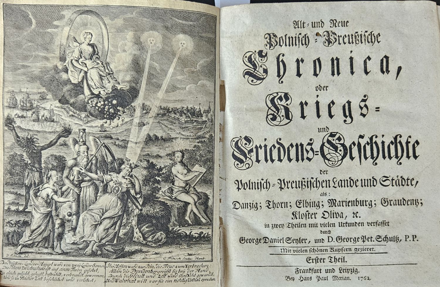 Alt = und Neue Polnisch = Preussische Chronica, oder Kriegs= und Friedens=Geschichte der Polnisch=Preussischen Lande und Städte, als: Danzig; Thorn; Elbing; Marienburg; Graudentz; Kloster Oliva, etc. in zwey Theilen mit vielen Urkunden verfasset durch ....