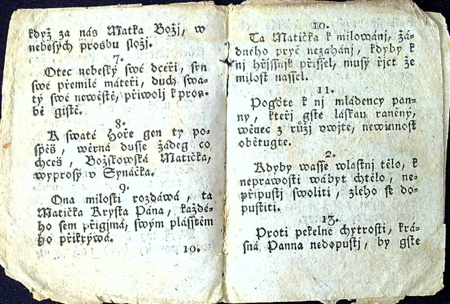 Knihopis 14420 (eviduje 2 ex., jeden z nich, námi nabízený, pochází ze sbírky Rudolfa Hlavy)<br>Tištěno švabachem, 23 arabsky číslovaných strof, na tit. listu dřevořez Panny Marie Boskovské, na rubu tit. listu v záhlaví rámeček z prolamované ozdobné lišty s drobným ornamentem uvnitř rámečku, vstupní plná iniciála ve výši dvou řádků. - Papír zahnědlý a při okrajích potrhaný.