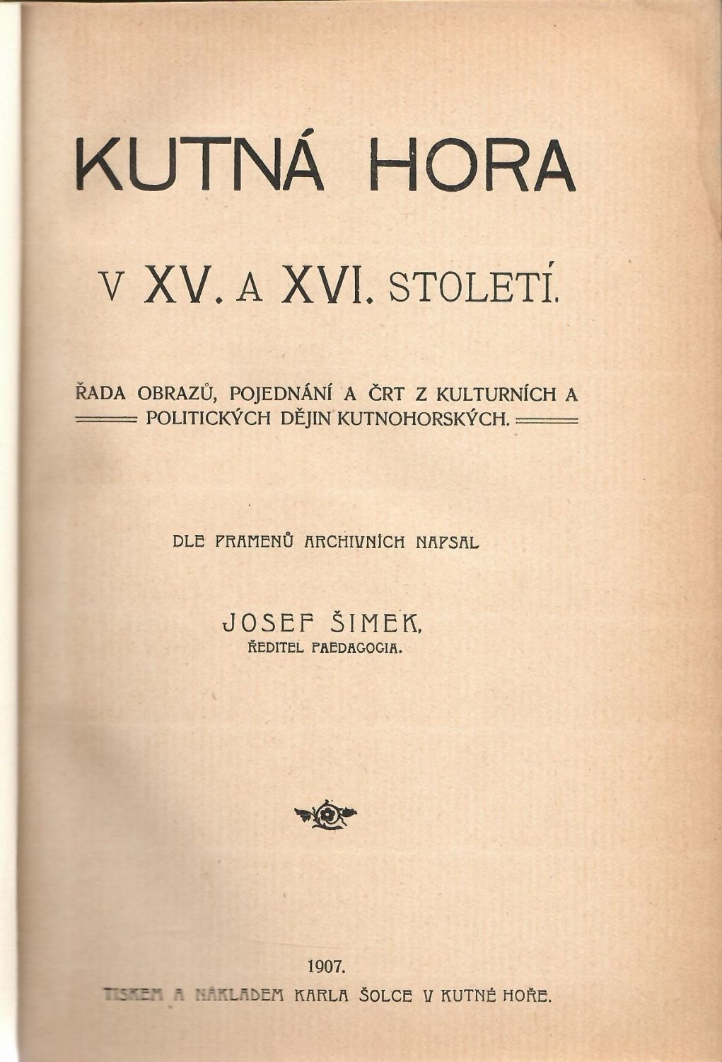 Řada obrazů, pojednání a črt z kulturních a politických dějin kutnohorských.<br>Kniha je bez papírového obalu. Desky potaženy zeleným plátnem, ve hřbetu tlačený a barvený věcný název knihy. Listy zažloutlé, na předním přídeští nalepeno ex libris V. Zdrubecký.