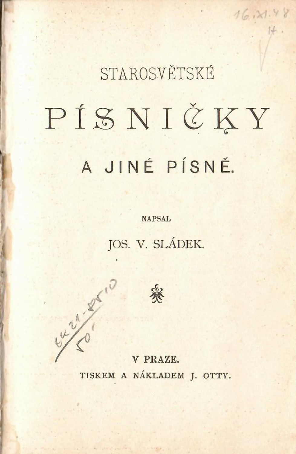 Starosvětské písničky a jiné písně.