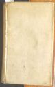 Dobová pergamenová vazba, při horním okraji hřbetu černým perem napsaný název, na přední předsádce, na tit. listu a dvou následujících listech při spodním vnějším kraji drobné stopy od červotoče, papír místy lehce zahnědlý.