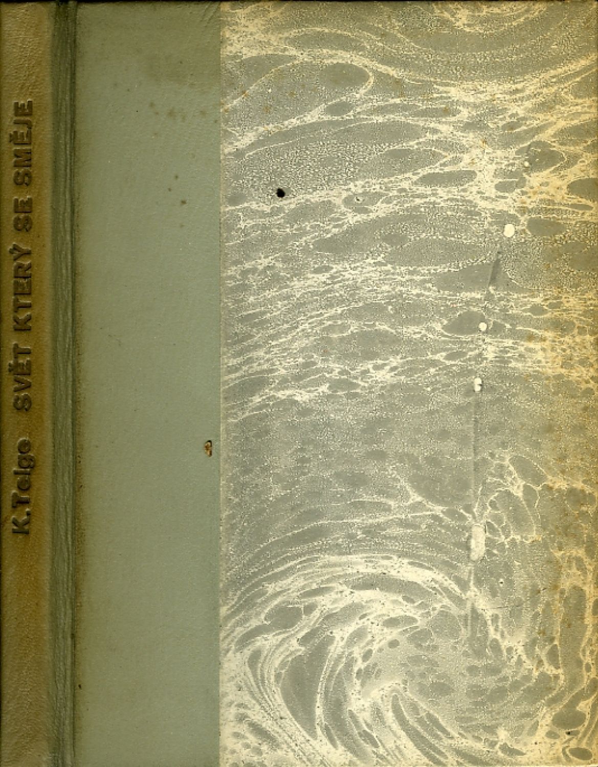 Sv. 1: "Svět, který se směje", za textem 8 čb. fotoilustrací na křídovém papíře; sv. 2: "Svět, který voní", v textu několik čb. reprodukcí. - Jednotné vazby s deskami potaženými šedě mramorovaným papírem, šedým koženým hřbetem s tlačeným věcným názvem, ručně šité kapitálky, přední strany pův. obálek přivázány. Vazby mírně ušpiněné, tit. dvoulist 2. sv. lehce zvlněný, list s tiráží téhož svazku pomačkaný, protržený a podlepený, jinak dobrý stav.