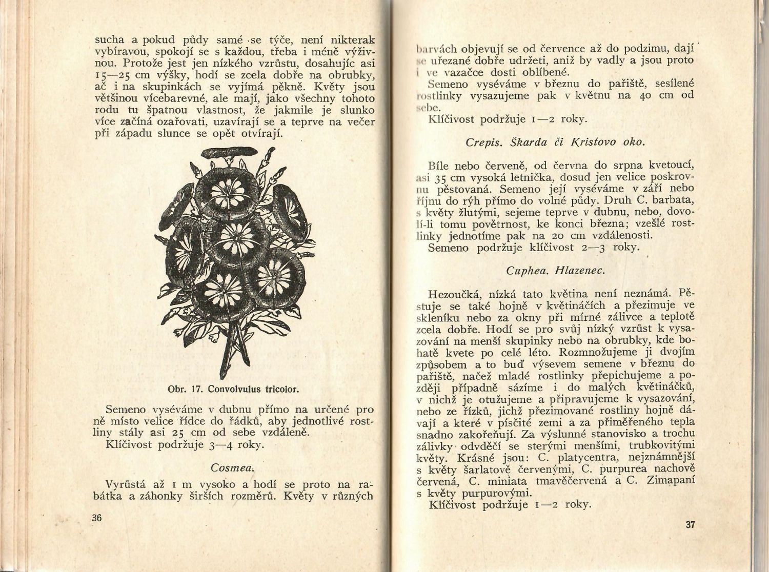 Pěstování květin v zahradách a zahrádkách. Květiny jednoleté (letničky) a vytrvalé (trvalky). Jejich rozmnožování, sázení, ošetřování spolu s návodem ku pěstování a sbírání semen. Podrobné pokyny jak každého jednotlivého druhu užíti lze v zahradách, zahrádkách domácích i ku krášlení hrobů na hřbitovech.