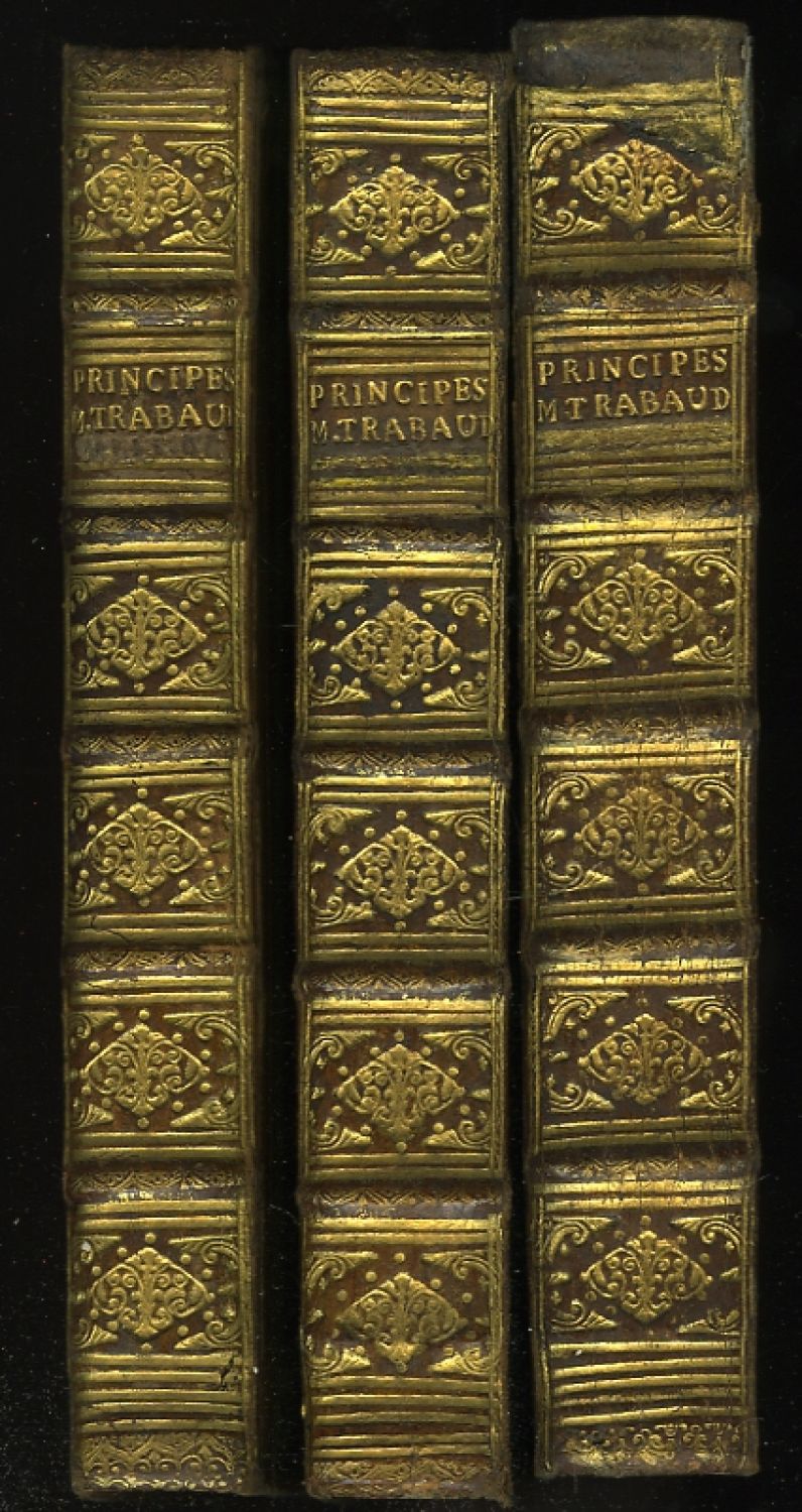 Na tit. listu viněta, pásový vlys ve dvojitém jednoduchém rámečku s květinovým dekorem, viněty, versálkami tištěná živá záhlaví, místy tisk kursivou. Za textem šest rozkládacích mědiryt. příloh se 119 nákresy.<br>Dobová vazba ze světlé teletiny, na obou deskách rámeček z jednoduchých zlacených linek, v jeho rozích tlačené a zlacené ornamenty, ve hřbetu 5 vazů, ve druhém poli tlačený a zlacený název, v polích ostatních mezi dvojitými linkami tlačený a zlacený ornament, na předsádkách tragantový papír, červeně barvené ořízky. Vazba mírně popraskaná a ohmataná, na tit. listu stopa po odstraněné provenienci, několik listů mírně zažloutlých. <br>Jean Francois Trabaud byl francouzský fysik a matematik, který žil v 18. století. Ve svých dílech se věnoval kritickému zkoumání konceptu setrvačnosti a jeho budoucnosti, vnímal shodu mezi pohybem samotným a rovnováhou, vesmír je kombinací pohybu a hmoty a proto většina vědních disciplín (především astronomie a navigace)je vědou pohybu, či její součástí stejně jako mechanik<br>Jean Francois Trabaud byl francouzský fysik a matematik, který žil v 18. století. Ve svých dílech se věnoval kritickému zkoumání konceptu setrvačnosti a jeho budoucnosti, vnímal shodu mezi pohybem samotným a rovnováhou, vesmír je kombinací pohybu a hmoty a proto většina vědních disciplín (především astronomie a navigace)je vědou pohybu, či její součástí stejně jako mechanik