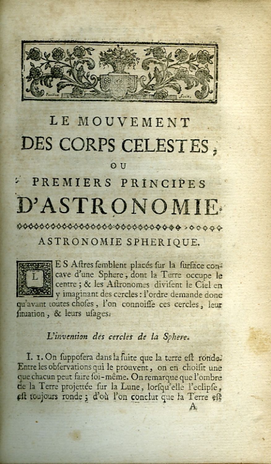 LE MOUVEMENT DES CORPS CELESTES, OU PREMIERS PRINCIPES D´ASTRONOMIE.