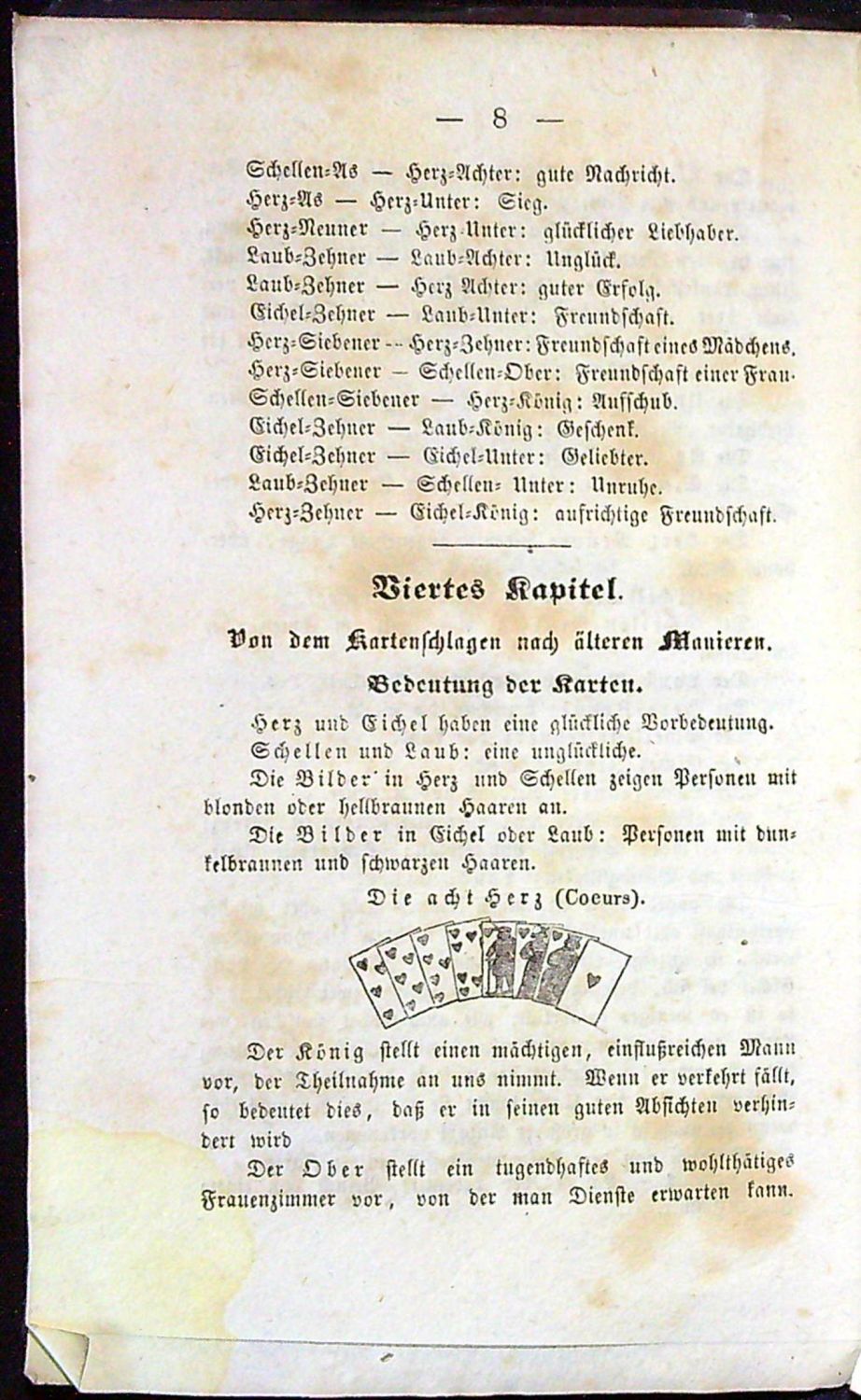 Tištěno švabachem, francouzská slova antikvou. V textu několik dřevoryt. vyobrazení hracích karet. - Knižní blok nerozřezaný a volně vložený v pap. obálce z druhé půle 19. století.