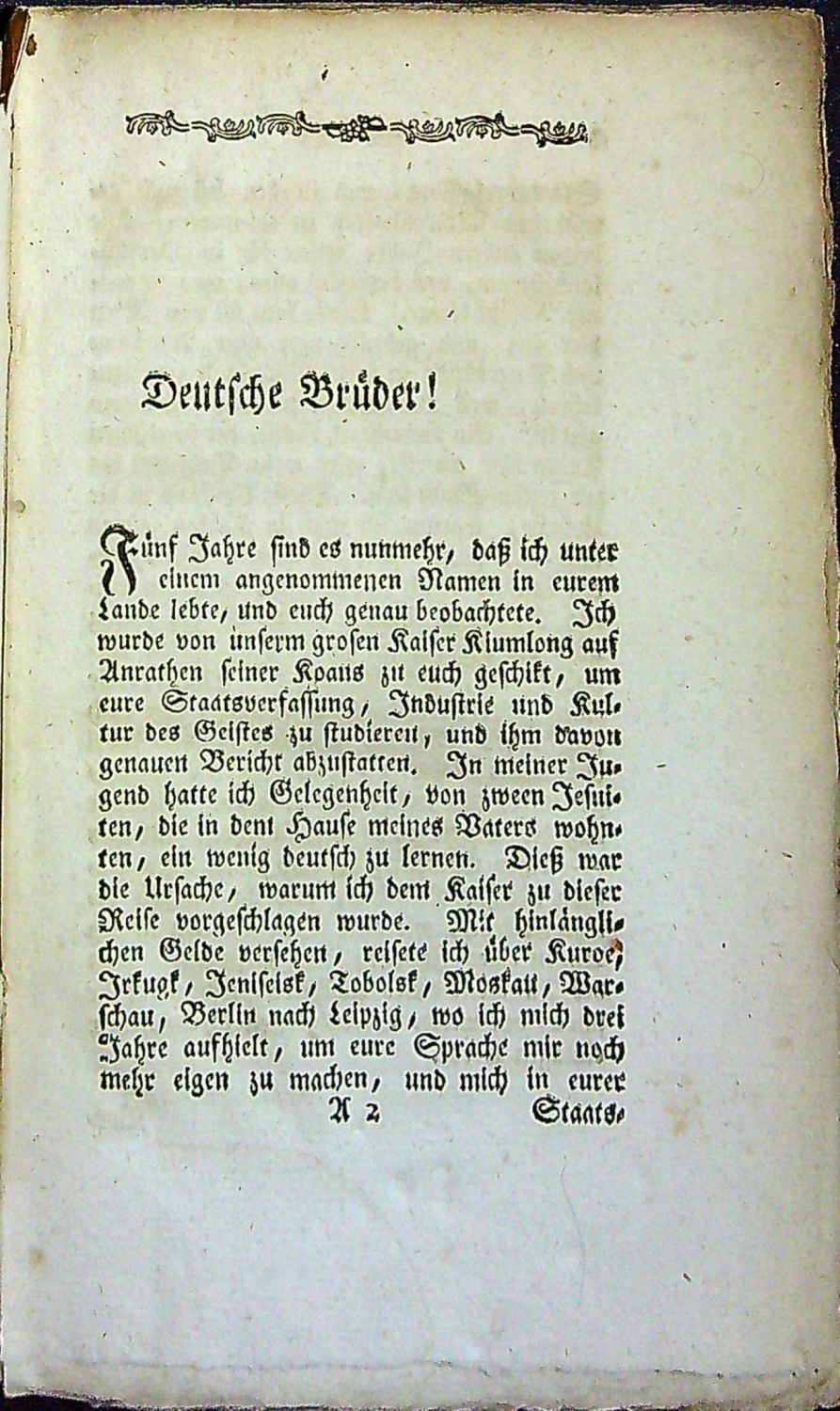 Wolfstieg 23410<br>Tištěno švabachem, uprostřed horního okraje stran dvojitá mizící linka, na tit. listu drobná viněta, v záhlaví první strany textu prolamovaná ozdobná tyč. - Dobová pap. obálka, knižní blok neoříznutý, část listů při vnějším okraji lehce pomačkaná, oslí uši. Na tit. listu staré razítko berlínské zednářské lóže "Zu den drei Weltkugeln", na přední rubové straně obálky nalepeno ex libris Gustava Partheye. Obálka zašpiněná, přes hřbet zčásti přelepená světlou pap. páskou, pří spodním okraji přelepený pap. knih. štítek.<br>Gustav Friedrich Konstantin Parthey (27.10. 1798 Berlín - 2.4. 1872 Řím), významný německý filolog a historik umění, od roku 1857 člen Pruské akademie věd. Mimo jiné autor zásadního soupisu grafických prací Václava Hollara, který vyšel poprvé tiskem roku 1853. Jeho matka byla nejstarší dcerou spisovatele, kritika a knihkupce Friedricha Nicolaie, který založil "Nicolaische Buchhandlung" v Berlíně, a které Parthey později převzal.