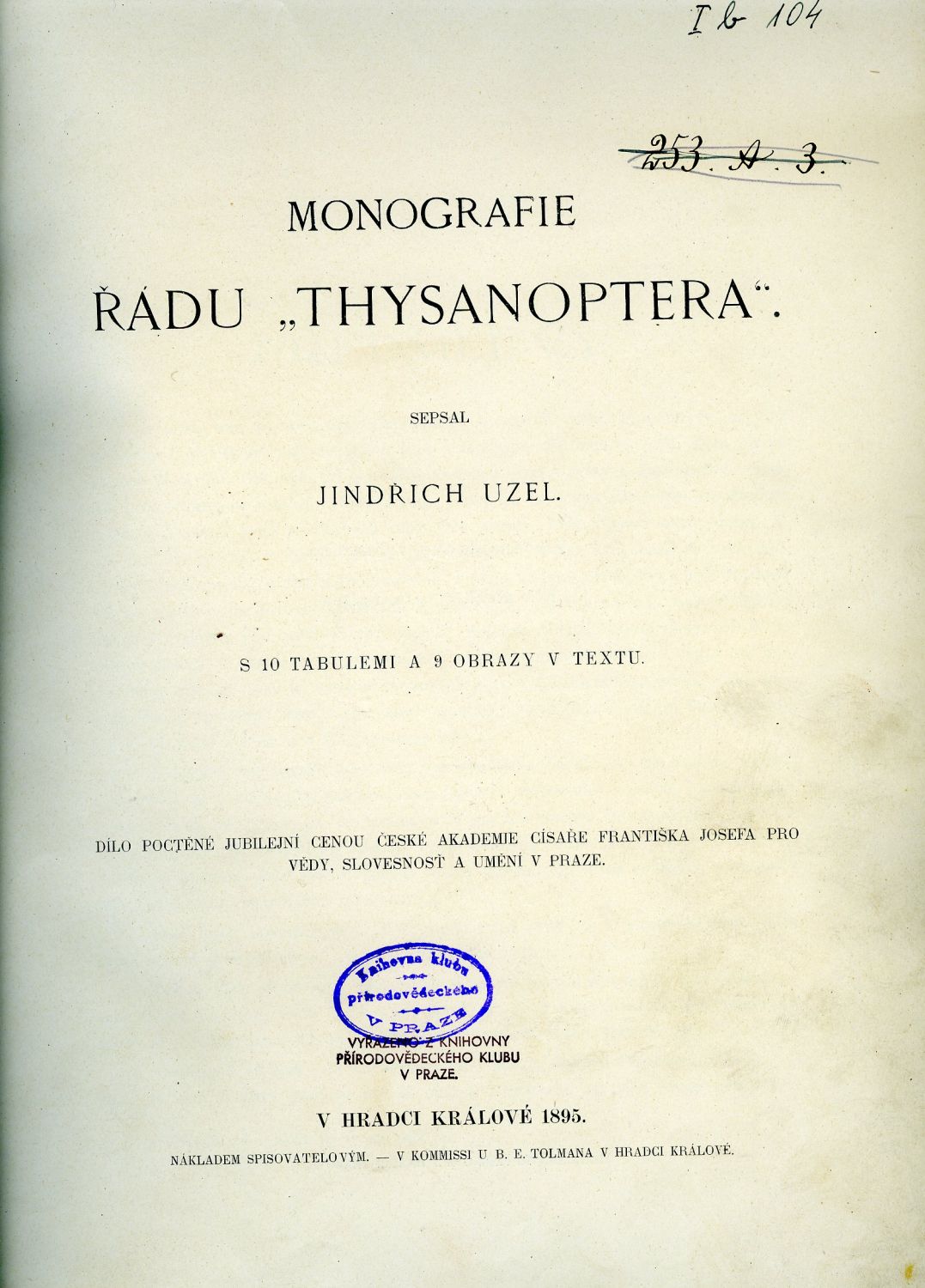 Dílo poctěné Jubilejní cenou České akademie císaře Františka Josefa pro vědy, slovesnost a umění. Český a německý text. - Hřbet se zlac. věcným názvem a kožené nárožnice silně odřené, konce hřbetu natržené. Na přídeští, předsádce a tit. listu rkp. knihovnické signatury, na rubu patitulu, tit. listu, rubu tabulí a přilehlých listech s vysvětlivkami stará razítka knihovny Klubu přírodovědeckého v Praze, na rubu patitulu též rkp. dedikace autora témuž klubu.