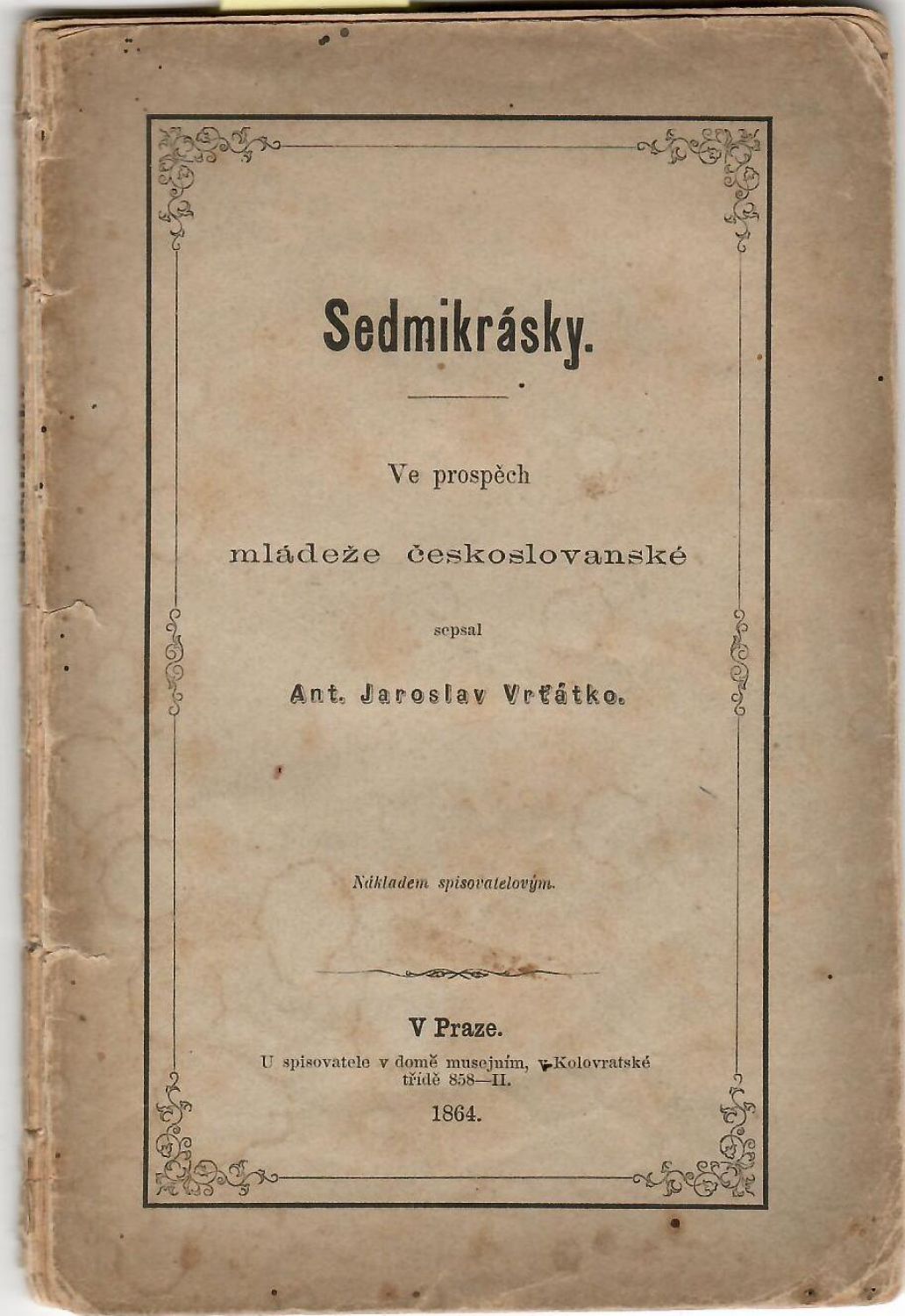 Původní pap. obálka, zašpiněná, při okrajích roztřepená, ve hřbetu potrhaná, přední strana obálky a první dva listy uvolněné od knižního bloku, papír zahnědlý, v textu tu a tam hnědé skvrny.<br>Jaroslav Antonín Vrťátko (29.5. 1815 Benátky nad Jizerou - 19.12. 1892 Praha), spisovatel a vychovatel v šlechtických rodinách, od roku 1861 bibliothekářem knihovny Českého muzea po Václavu Hankovi. Redigoval almanach Perly české. Autor romantických povídek a románů, veršů pro děti, populizátor vědy. Snažil se dokázat český původ J. Gutenberga.