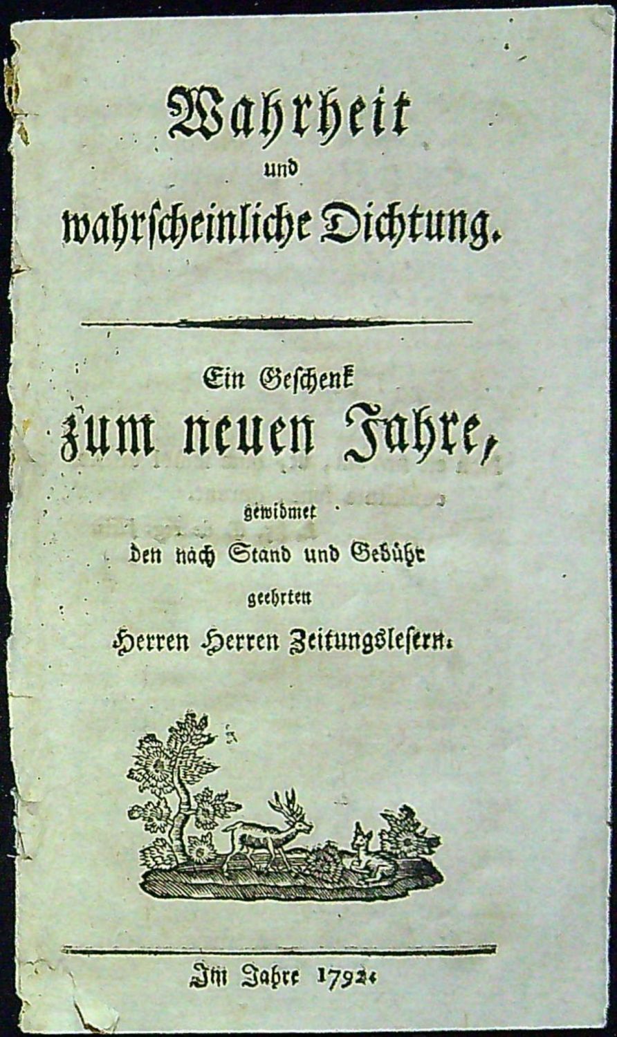 Wahrheit und wahrscheinliche Dichtung. Ein Geschenk zum neuen Jahre, gewidmet den nach Stand und Gebühr geehrten Herren Herren Zeitungslesern.