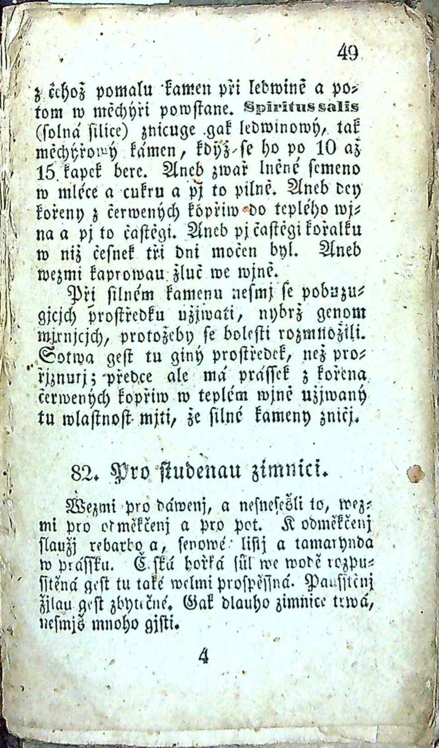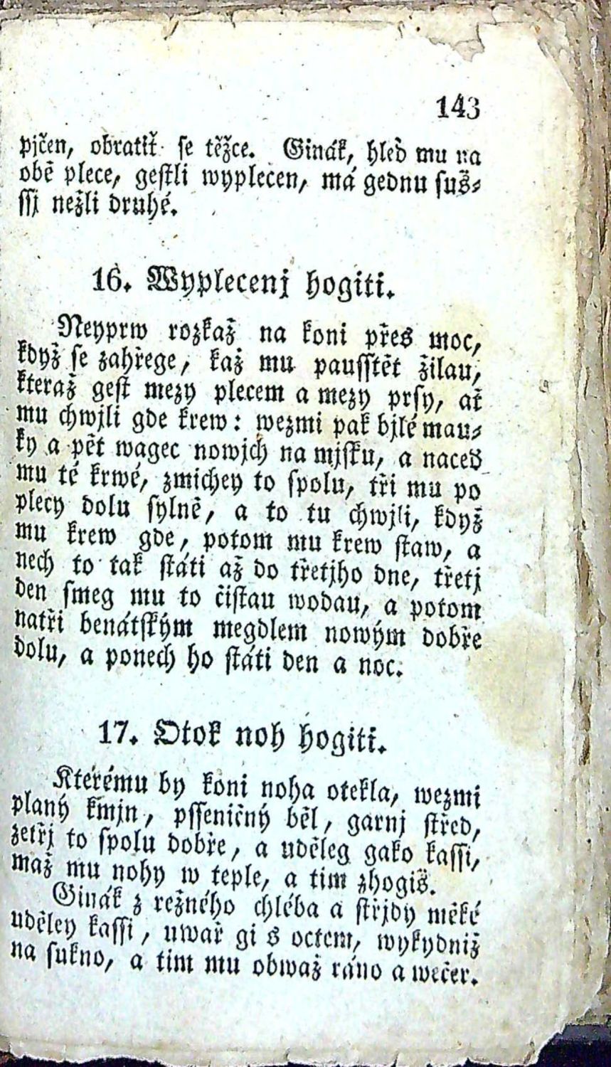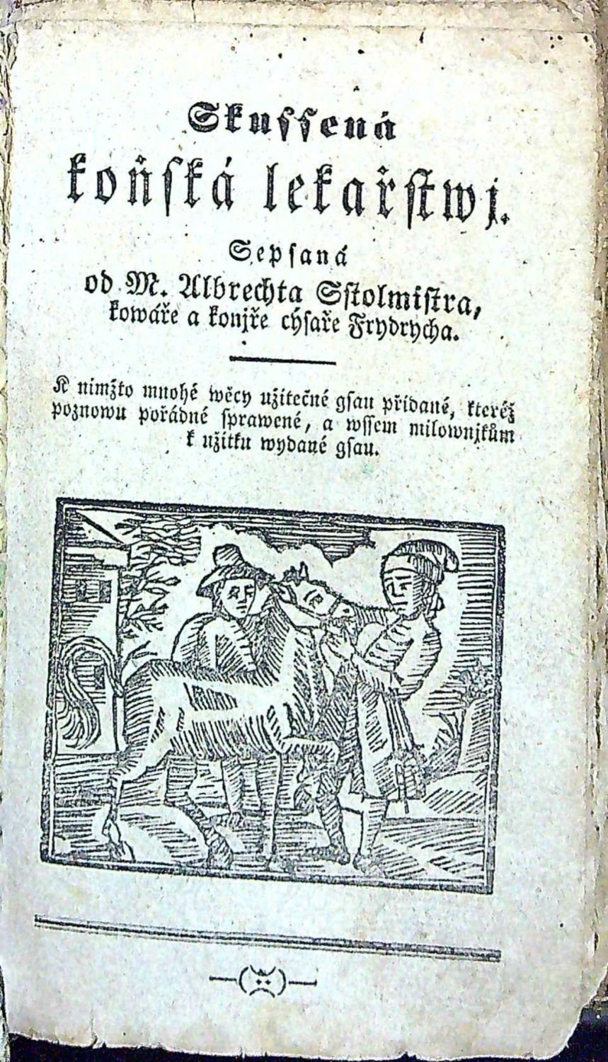SKC toto vydání neeviduje.<br>Tištěno švabachem, arabská paginace stran při horním vnějším okraji, mizící linky, mizící ozdobné tyče, arabsky číslované naučení. Knižní blok chybně svázaný. Na začátku je svázána strana 133 s mezititulním listem "Skussená koňská lekařstwji. Sepsaná od M. Albrechta Sstolmistra, kowáře a konjře cýsaře Frydrycha". Dřevořezová viněta (oproti jiným vydáním stranově obrácená). <br>Dochované strany: strana 5-12,33-92,97-104,107-128 (svázány za stranou 142),131-132 (za str. 190),133-180 + 2 str. (utržený roh s paginací), strana 141 svázána za stranou 132. Dobová kožená vazba s tlačeným zrcadlem zdobeným ornamentem, uvnitř rámu tlačený ozdobný kříž. Vazba ohmataná a zašpiněná. - Svazek obsahuje řadu, někdy i velmi kuriosních, naučení pro chovatele dobytka, především koňů a krav.
