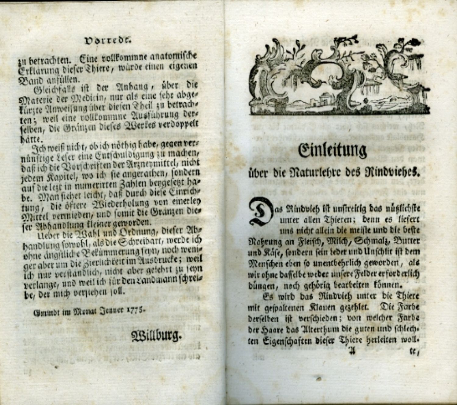 Anleitung für das Landvolk in Absicht auf die Erkänntniß und Heilungsart der Krankheiten des Rind=Viehes, samt denen Hülfsmitteln und einem Anhang über die Materie der Medicin, und Erläuterung der einfachen Heilungsmittel durch beygefügte lateinische Benennungen. Nebst beygefügten Anleitung zur Erkänntniß und Heilung der Krankheiten bey der Schaafzucht.