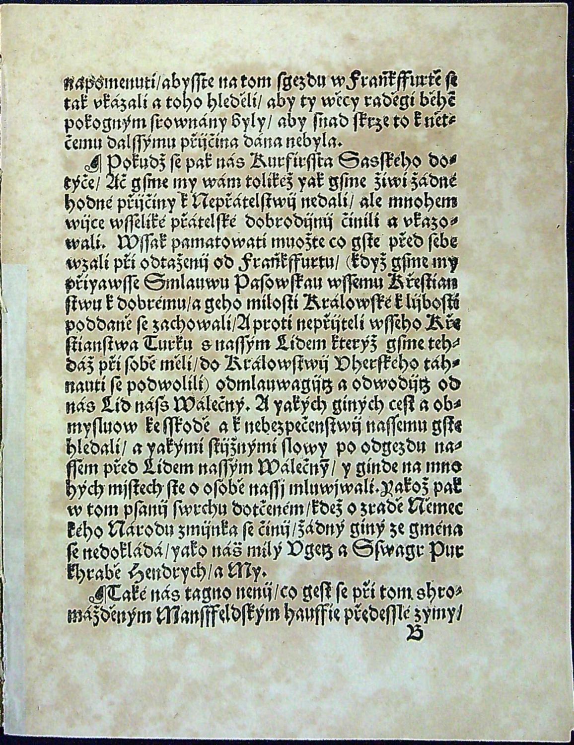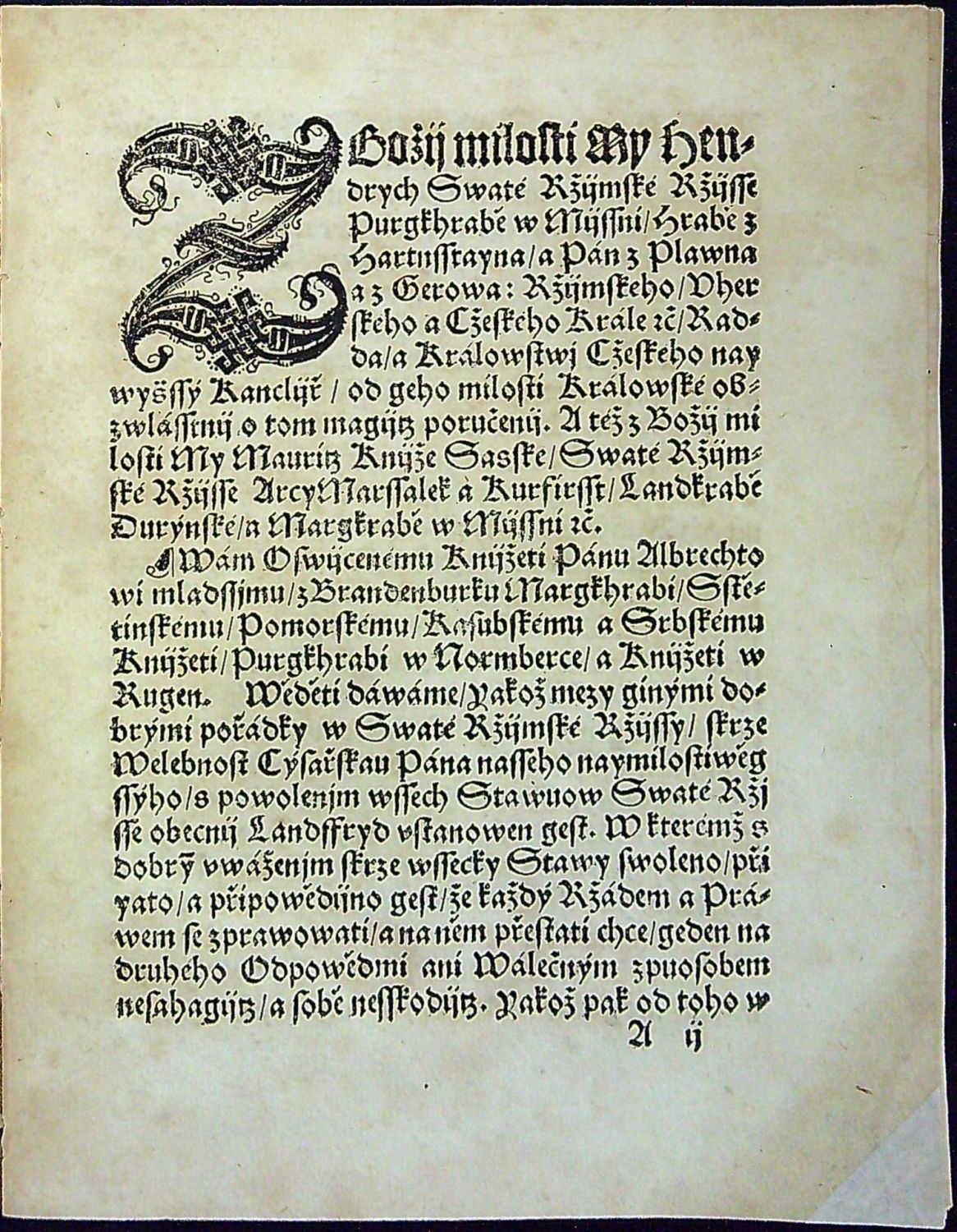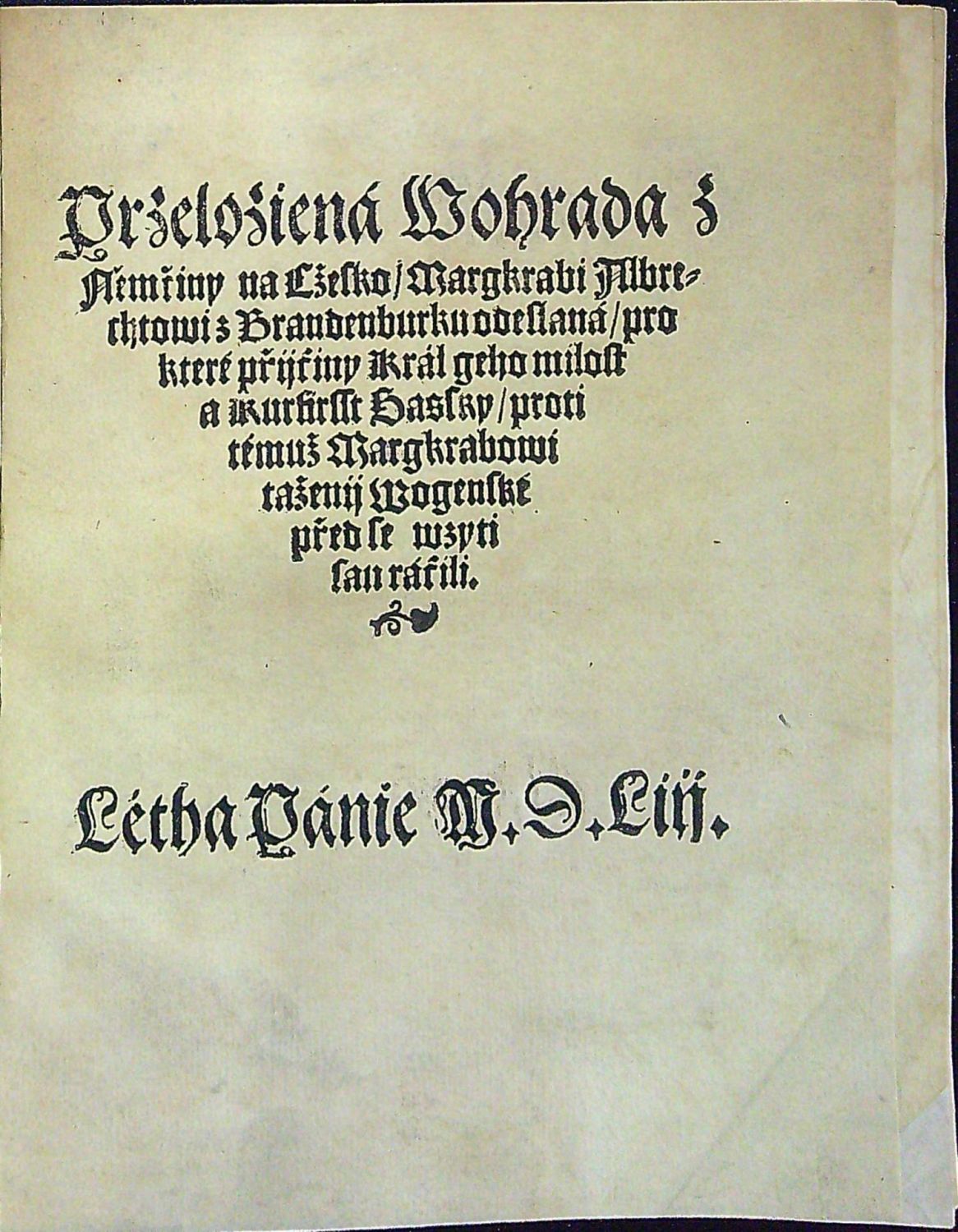 Przeloziená Wohrada z Němčiny na Cžesko/ Margkrabi Albrechtowi z Brandenburku odeslaná/ pro které přijčiny Král geho milost a kurfirsst Sasky/ proti témuž Margkrabowi taženij wogenské před se wzyti sau ráčili.