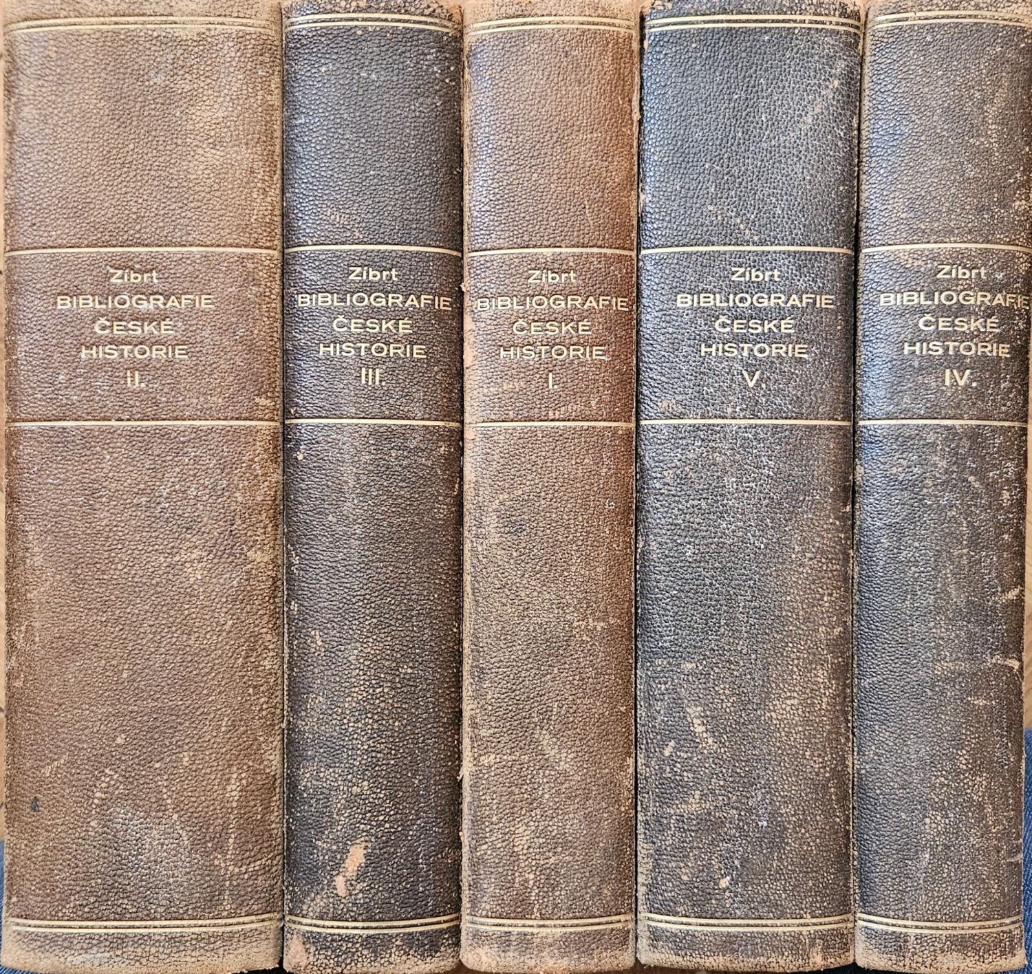 Díl 1.: I. Knihověda a část všeobecná. II. Pomocné vědy. Díl 2.: I. Prameny. II. Zpracování do r. 1419. Díl 3.-5.: Zpracování do r. 1679. - Dobové jednotné vazby s kartonovými deskami potaženými olejovým papírem, kožené hřbety a nárožnice, ve hřbetu tlačený a zlacený název, stříkané ořízky. Na předních přídeštích nalepená vlastnická ex libris. 1. "Ex libris Archisterii Břevnoviensis", . "Ex bibliotheca Dr. Pavel R. Pokorný". Vazby lehce ohmatané a místy mírně odřené.