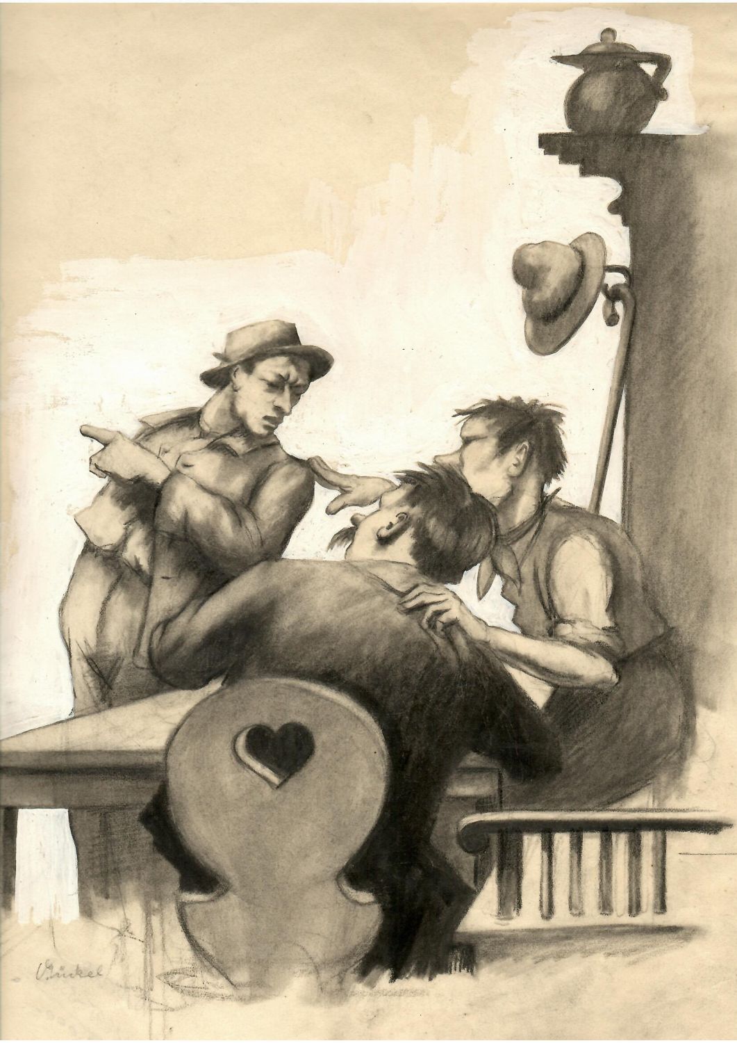 | Kresba tužkou, uhlem a bělobou na papíře o rozměru 338 x 236 mm, vlevo dole autorem tužkou podepsaná, na rubu při spodním okraji tužkou název a datace. |