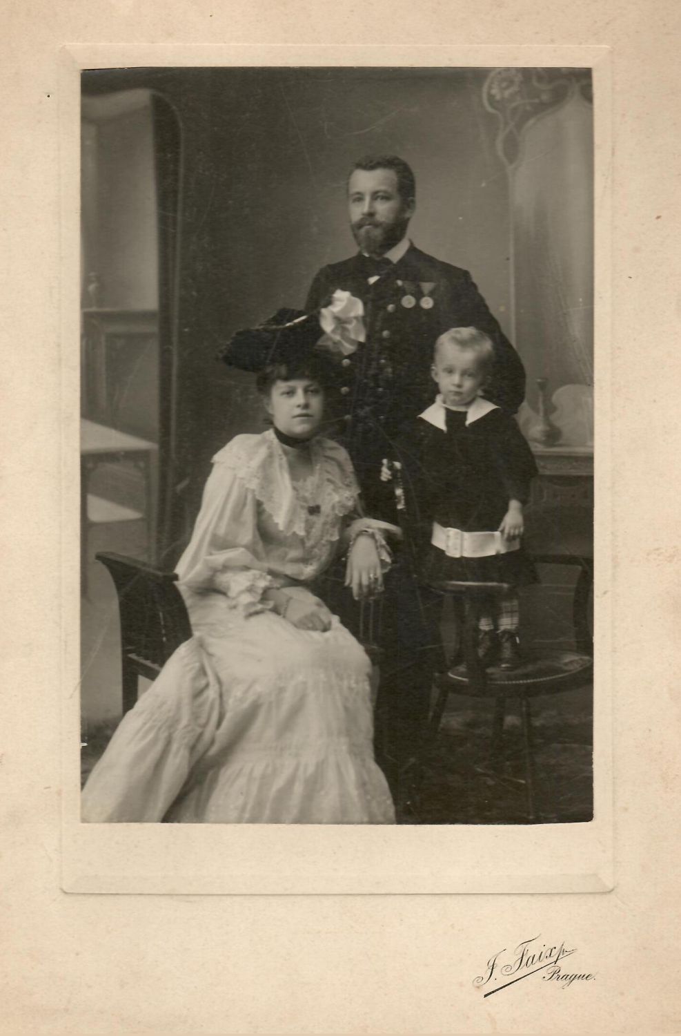 | Fotografie přimontována k tvrdému papíru. Při pravém spodním okraji fotografie natištěno logo ateliéru. Papír ohmataný, místy světle hnědé flíčky. Fotografie samotná ošoupána a místy poškrábána. |