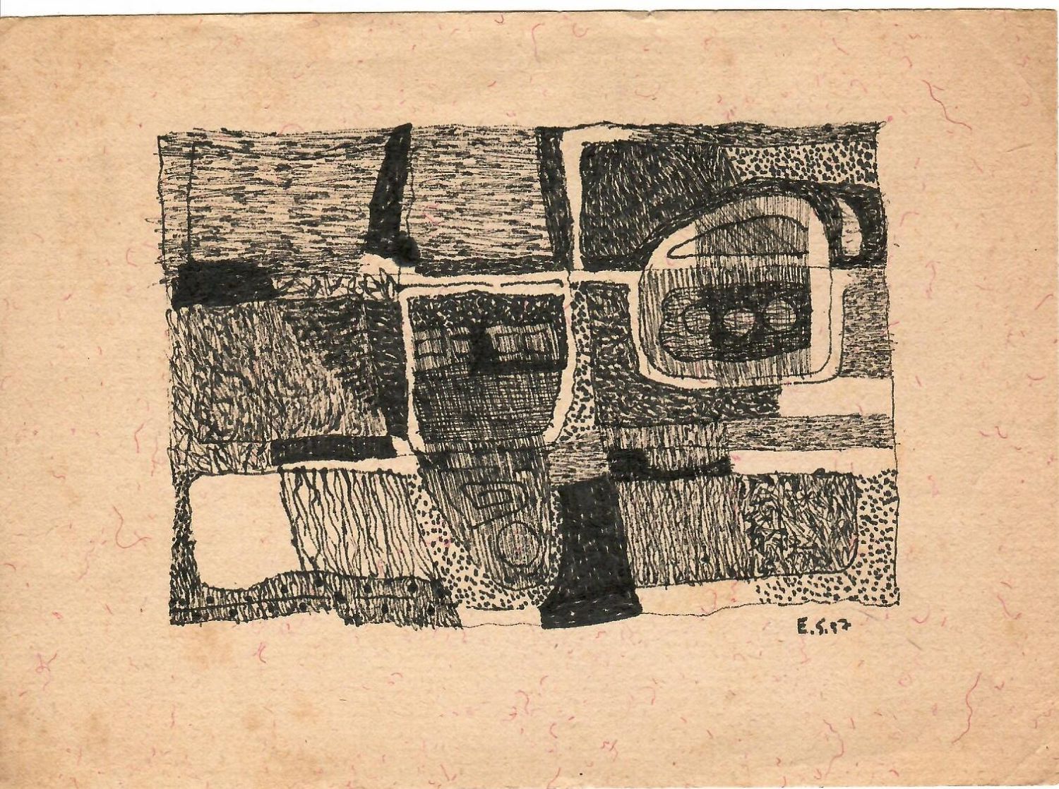 | Kresba tuší vpravo dole autorkou iniciálami signovaná a datovaná. |