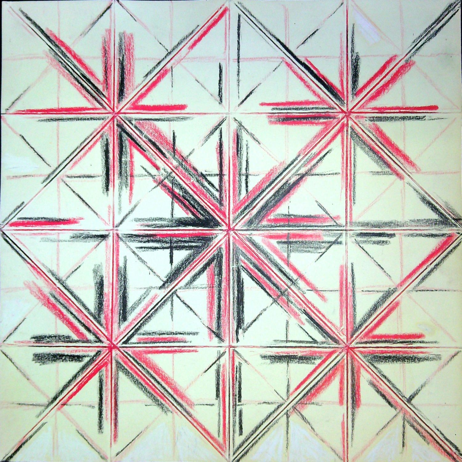 | Monostruktura s voskovými pastelkami na papíře, nesignováno. Provenience: práce byla zakoupena od autora. |