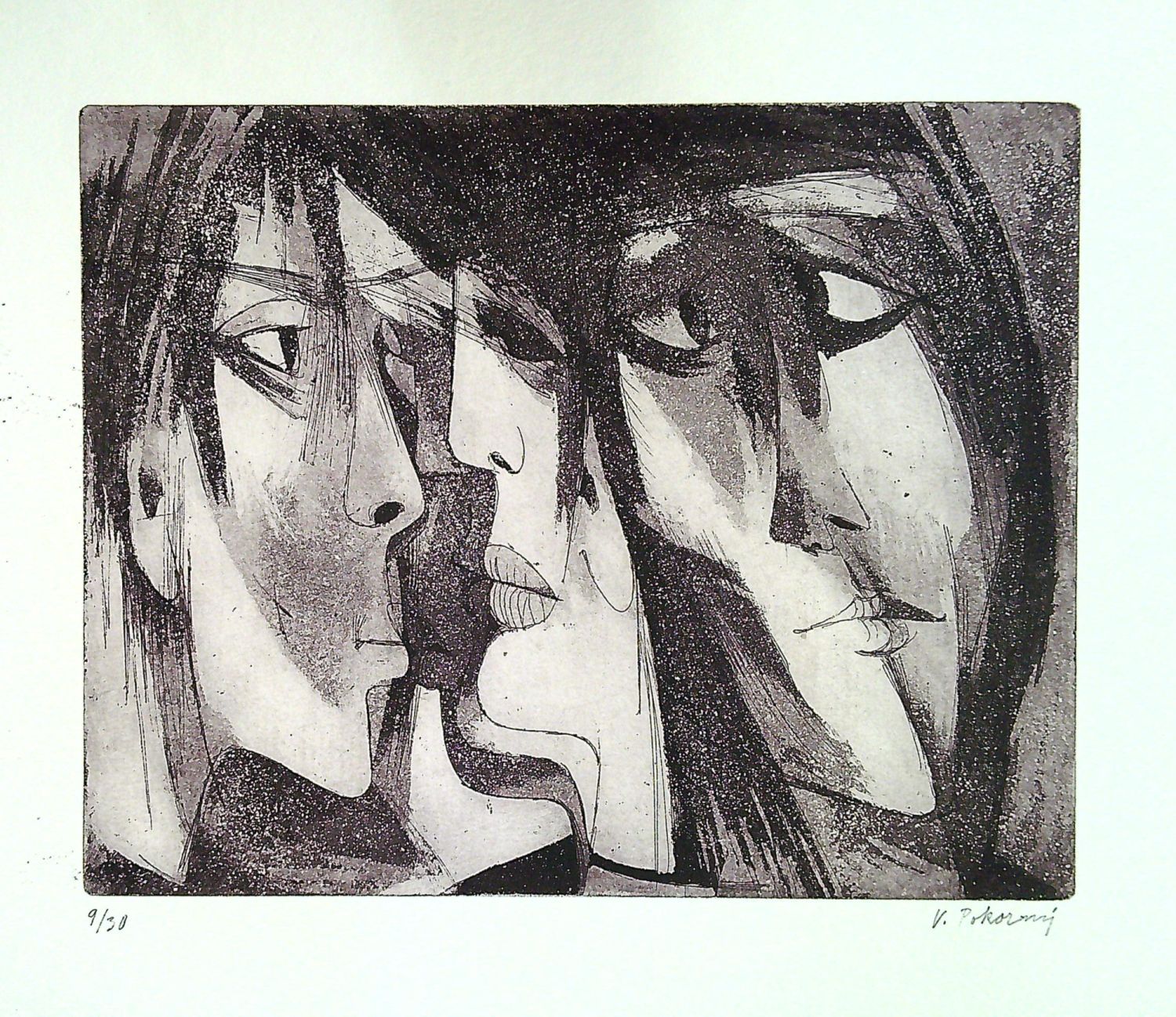 | Akvatinta s leptem, volný list vpravo dole autorem tužkou podepsaný, vlevo dole číslo tisku 9/30. |