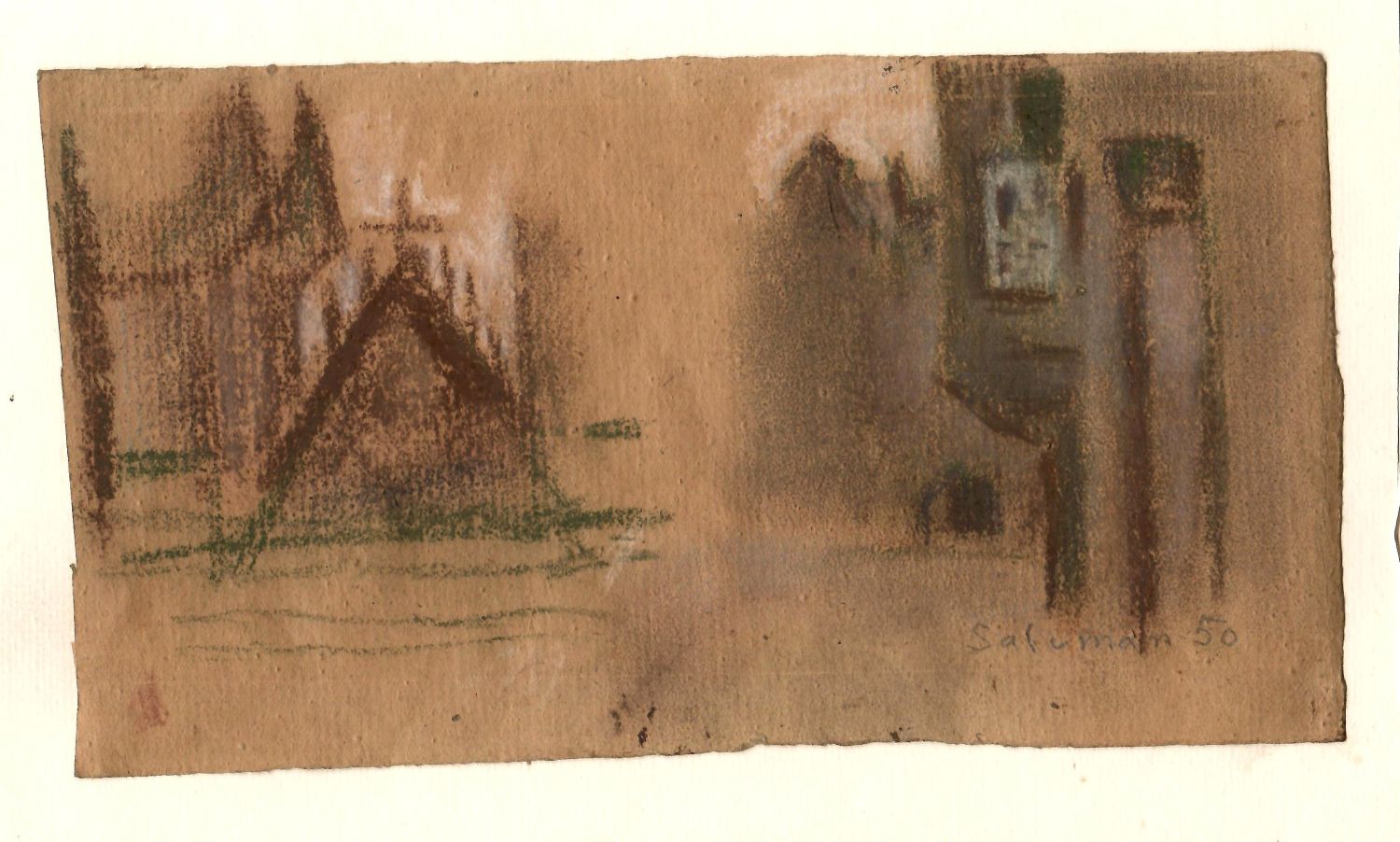 | Kresba pastelem z r. 1950 na rubu olejového papíru o rozměru 125 x 225 mm z 20. let 20. století. Volný list signovaný a datovaný vpravo dole tužkou. |