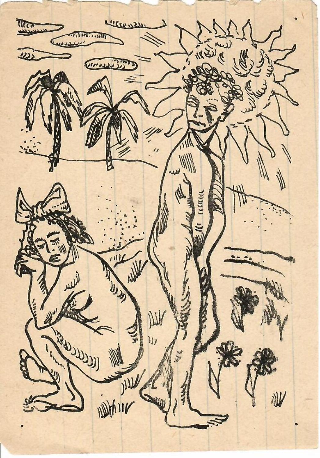 | Algrafie o rozměru 125 x 85 mm tištěná na list linkovaného papíru (140 x 99 mm), na rubu tužkou podpis autora. V Liter. archivu PNP je uložen dopis J. Dočekala datovaný 22.3.1951 psaný na rubu sedmi algrafií, tato je jiným otiskem jedné z nich. |