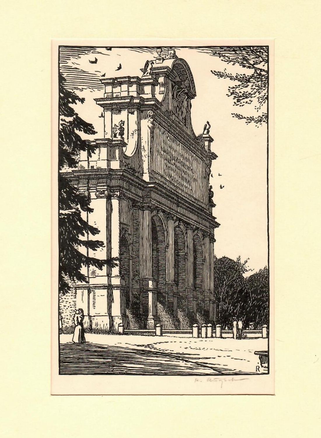 | Dřevořez, autorem signováno v desce a při spodním okraji tisku. Na rubu listu razítko sbírky Waldesova obrazárna s č. 1065 a razítko NGGS. List je v obou horních rozích přichycen k papírové paspartě. |