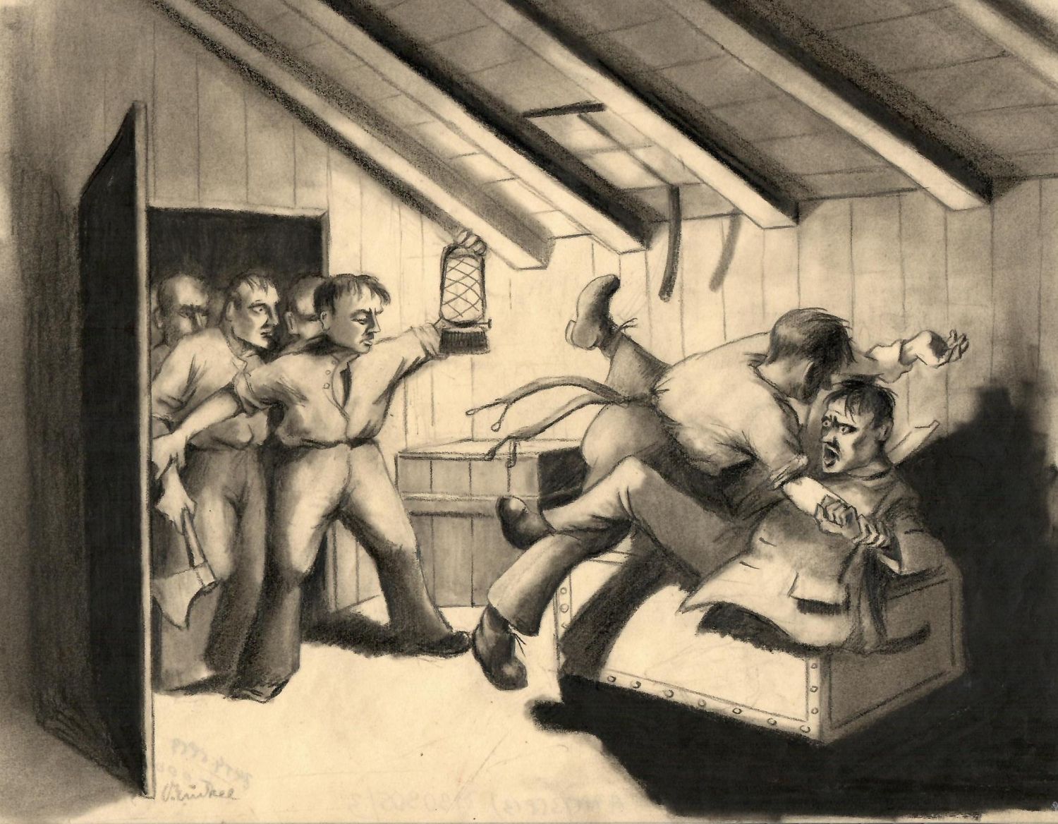 | Kresba tužkou a uhlem na papíře 238 x 272 mm, autorem vlevo dole tužkou podepsaná, na rubu při spodním okraji tužkou název a datace. |