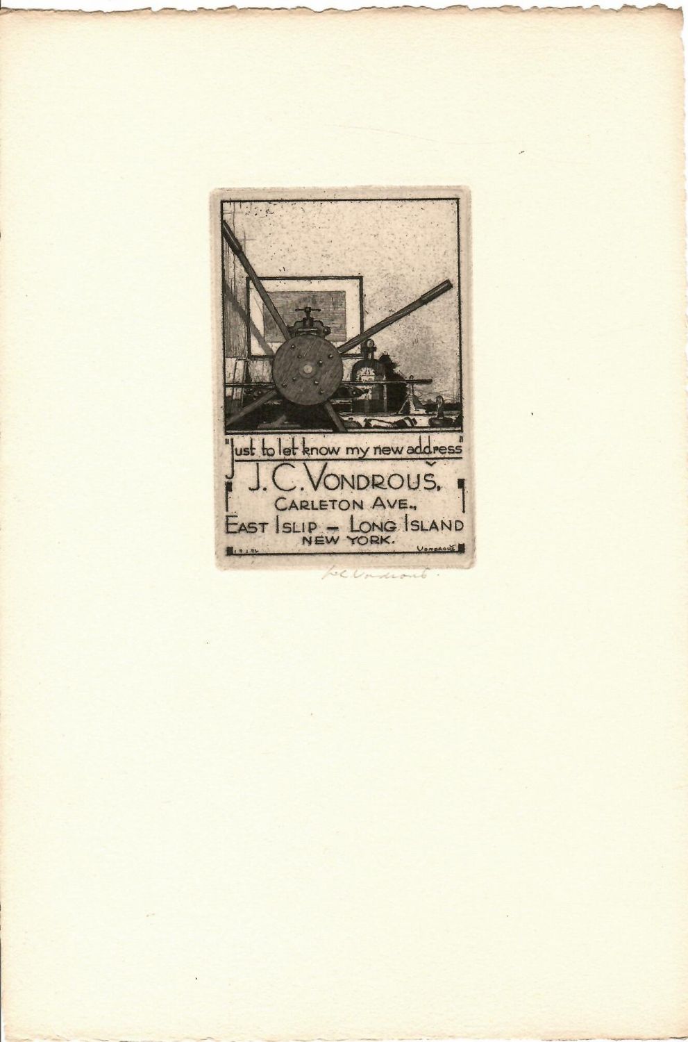 | Ex. č. 112 ze 150 vydaných (prvých třicet bylo tištěno na pravém japanu) a tištěných na italském ručním papíru Fabriano. Úvodním slovem opatřil Arthur Novák. - Původní pouzdro potažené plátnem s chlopní na zadní desce, ve kterém je volně vložený nití ve hřbetu šitý Novákův text a seznam vyobrazení + volně vložené jednotlivé grafické listy. Na přední straně pouzdra tlačená a zlacená ozdůbky s iniciálami autora, ve hřbetu tlačený a zlacený název. Pouzdro mírně zaprášené, jinak ve stavu velmi dobrém.<br>Na titulním listu drobná Vondroušova viněta provedená leptem, 15 pův. leptů autorem tužkou podepsaných: 1. Oznámka č. I 2. Novoročenka 1919 3. Exlibris A. B. Salant 4. Novoročenka - Křížovníci 5. Novoročenka - S. Giorgio v Benátkách 6. Oznámka č. II 7. Novoročenka - Zimní krajina 8. Novoročenka - Náchodský zámek 9. Novoročenka - Staroměstská radnice 10. Exlibris Svatopluk Samek 11. Loď v přístavu 12. Novoročenka - Malostranské mostecké věže 13. Novoročenka - Sv. Mikuláš 14. Novoročenka - Staroměstské náměstí 15. Novoročenka - Staroměstská mostecká věž |