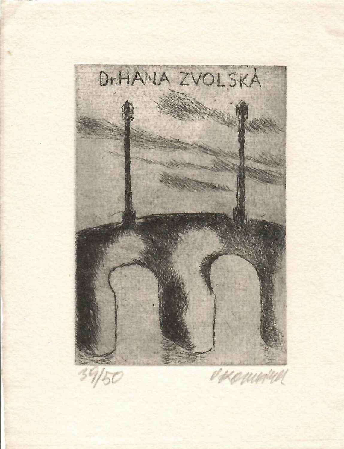 | Lept o rozměru desky 103 x 72 mm, papír o celkovém rozměru 160 x 120 mm. Při pravém spodním okraji tisku autorem tužkou signováno. Č.ex.39/50. |