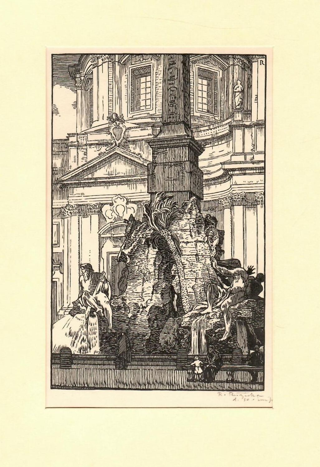 | Dřevořez, autorem signováno v desce a při spodním okraji tisku. Na rubu listu razítko sbírky Waldesova obrazárna s č. 1070 a razítko NGGS. List je v obou horních rozích přichycen k papírové paspartě. |