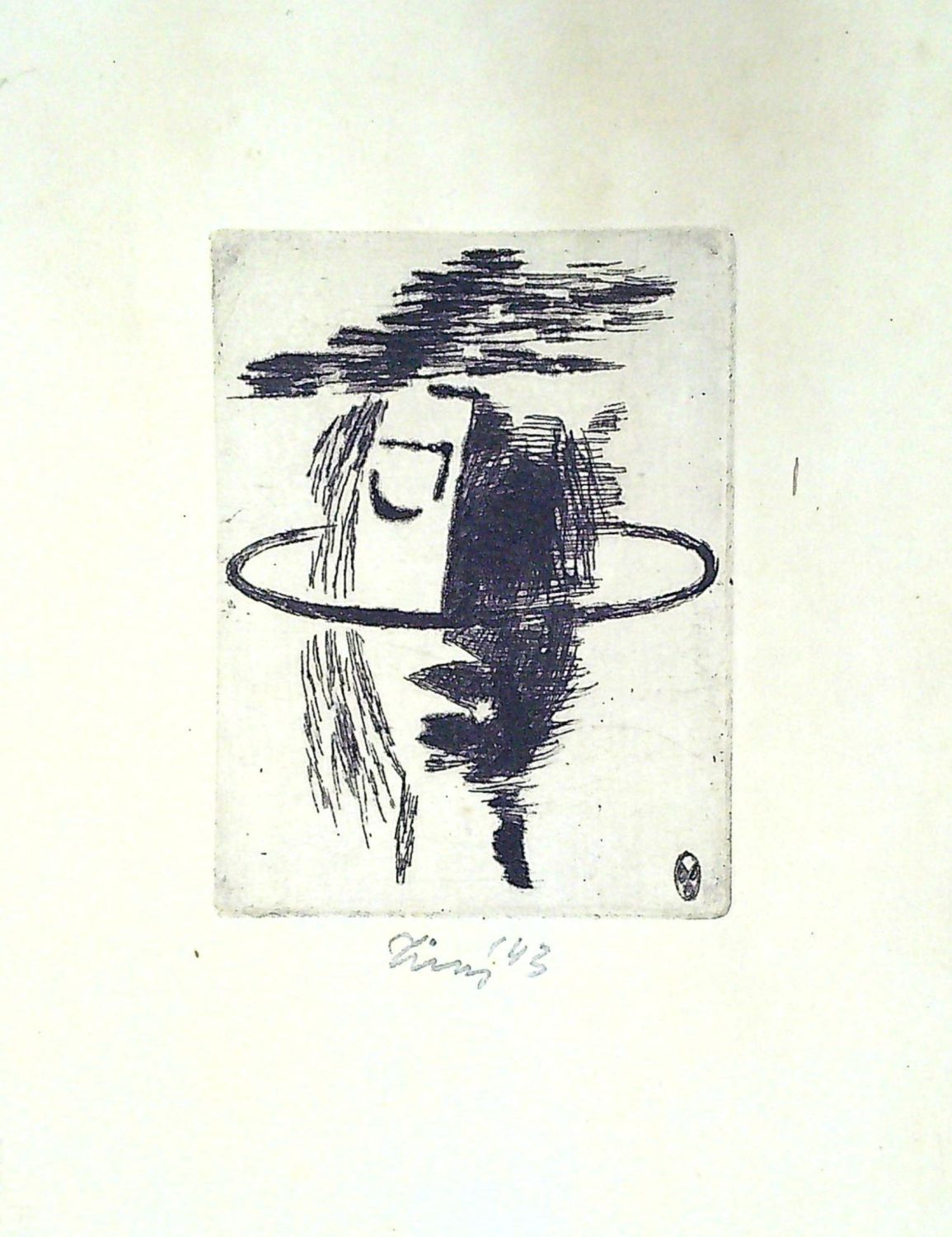| Suchá jehla, autorem uprostřed dole tužkou podepsaná a datovaná. Jeden z tisků, které autor vytiskl jako volnou grafiku. (Dvořák č. 56). |