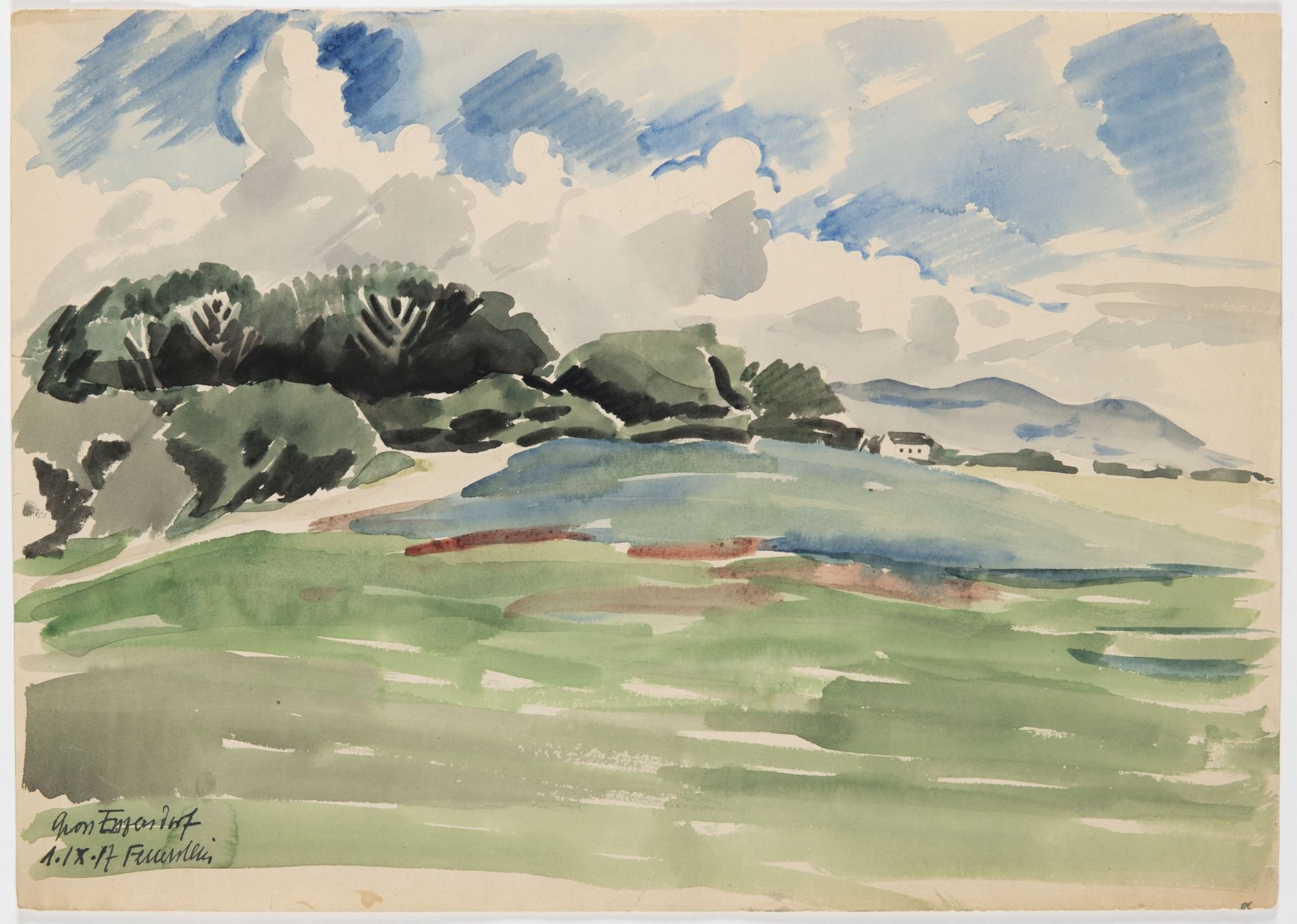 <p>Akvarel na papíře, vlevo dole signovaný a datovaný "1.IX.17". Práce je opatřena hlubokou paspartou a světlým přírodním rámem z olše. Akvarel pochází z pozůstalosti Bedřicha Feuersteina.</p>