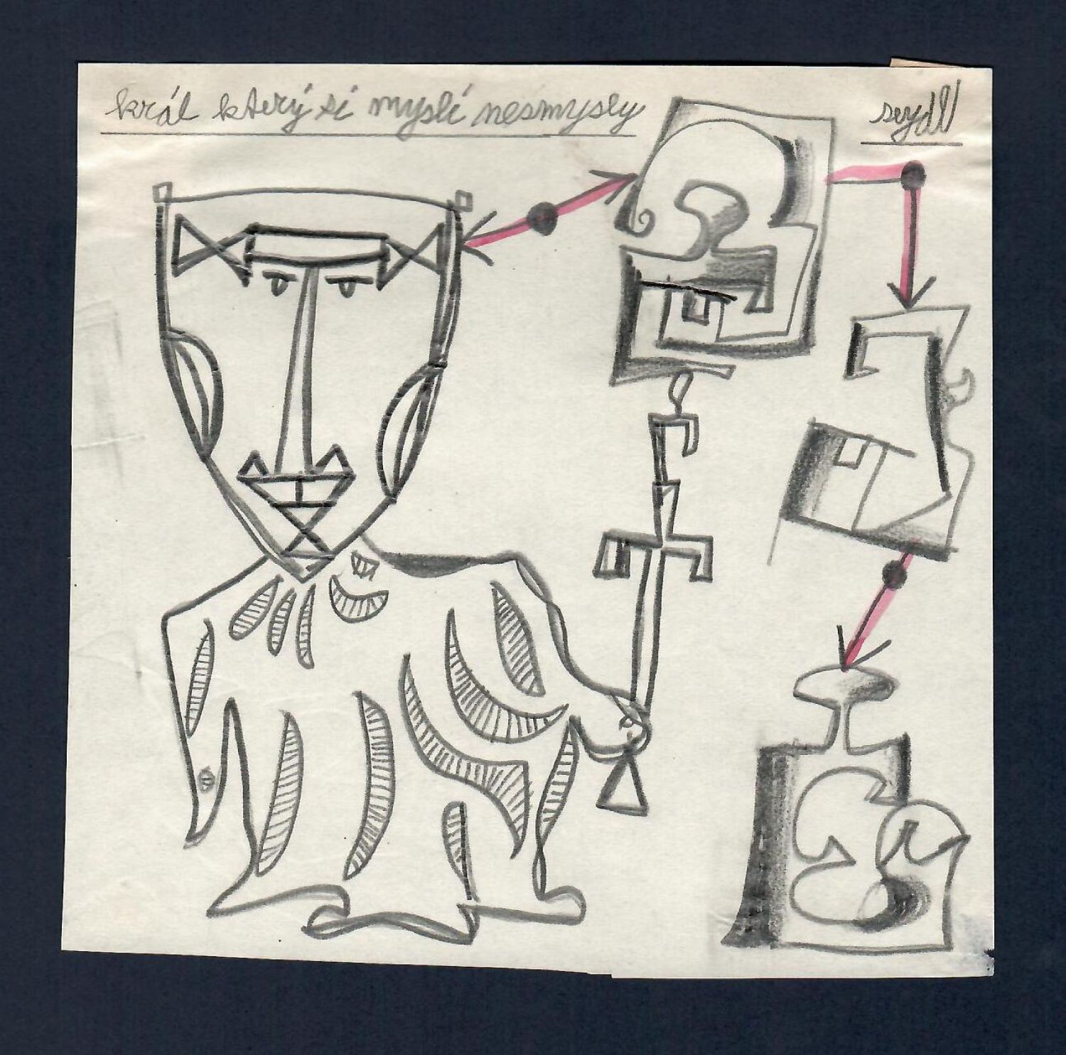 | Kresba tužkou, kolorována růžovým akvarelem. V pravém horním rohu autorem signována. Kresba je v obou horních rozích přichycena k podkladovému papíru, při spodním rozích stopy po předchozím uchycení. |