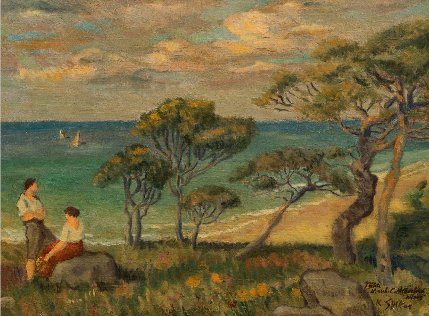 | Olej na plátně, autorem podepsaný vpravo dole a dedikovaný "Příteli Dr. arch. C. Hilbertovi". Práce je opatřena zdobným zlaceným dobovým rámem. |