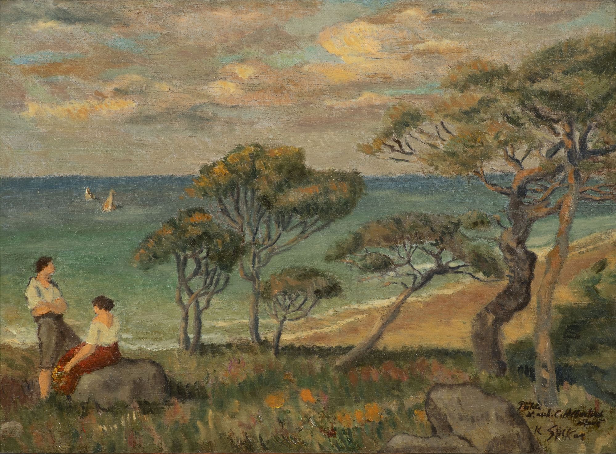 Olej na plátně, autorem podepsaný vpravo dole a dedikovaný "Příteli Dr. arch. C. Hilbertovi". Práce je opatřena zdobným zlaceným dobovým rámem.