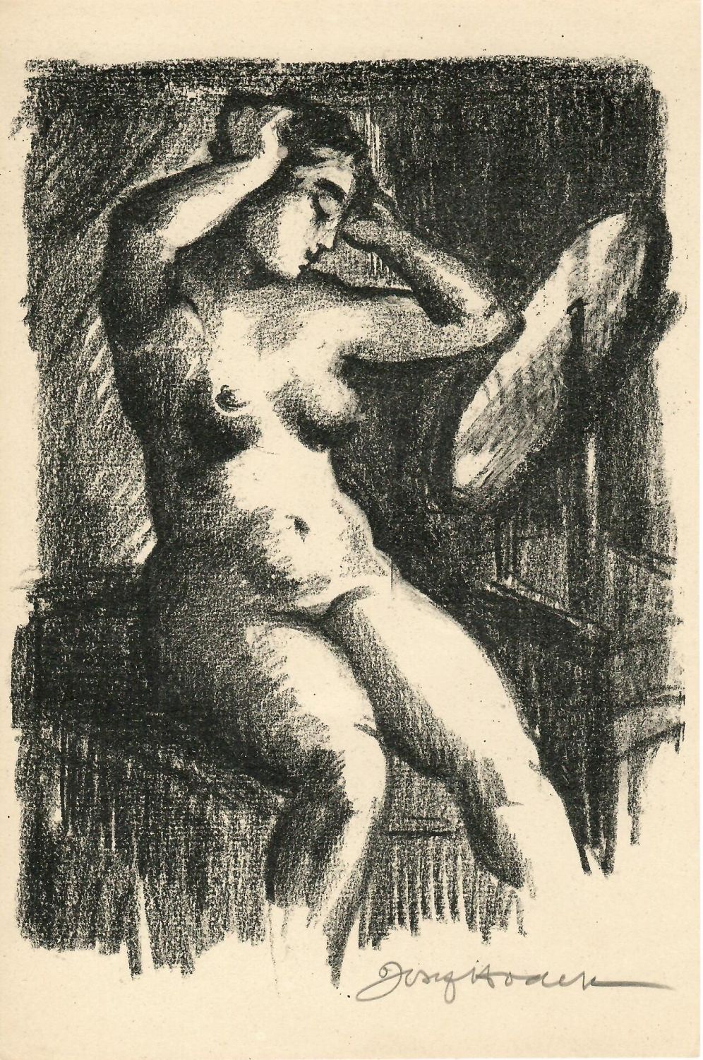 | Původní litografie o přibližném rozměru tisku 210 x 155 mm. Autorem v pravém spodním rohu tužkou signováno.<br>Langhammer Jan, Soupis grafického díla Josefa Hodka, str. 25, č. 31. |