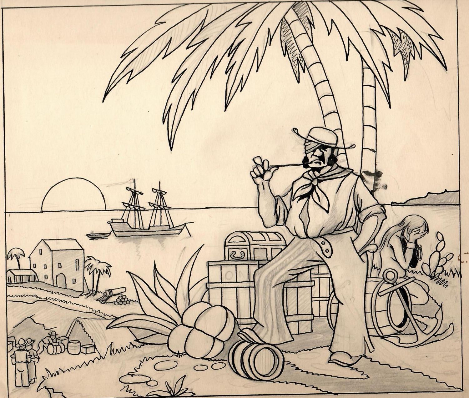 | Ilustrace. Kresba tužkou a perem o rozměru 200 x 230 mm na papíře 234 x 260 mm. Na rubu papírový štítek s autorovým jménem. |