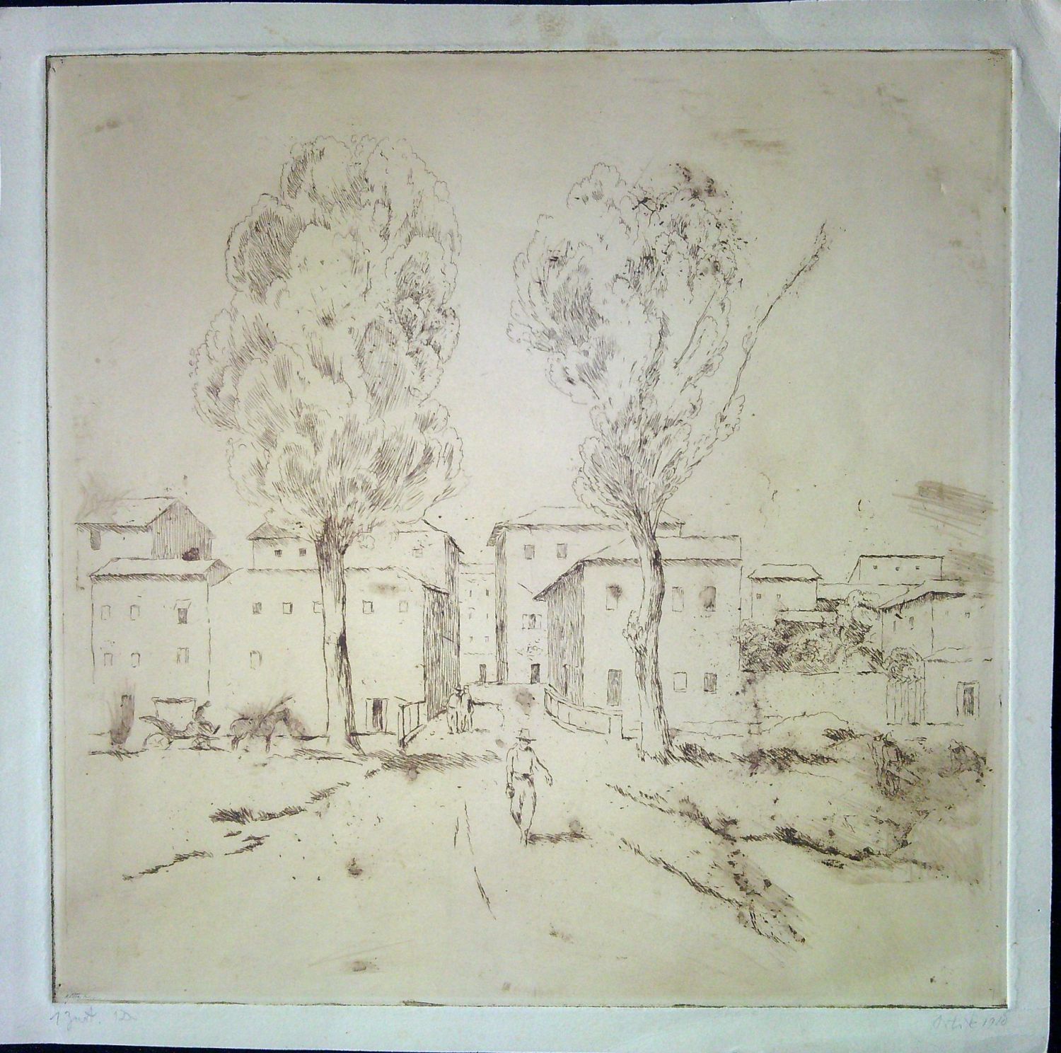 | Suchá jehla, autorem vpravo dole tužkou podepsaná a datovaná, vlevo dole tužkou autorem připsáno 1 Zust. 1 D. (= Zustand - první stav, Druck - první tisk). Volný list, při pravém horním okraji papír lehce zvrásněný (nezasahuje do tisku). |