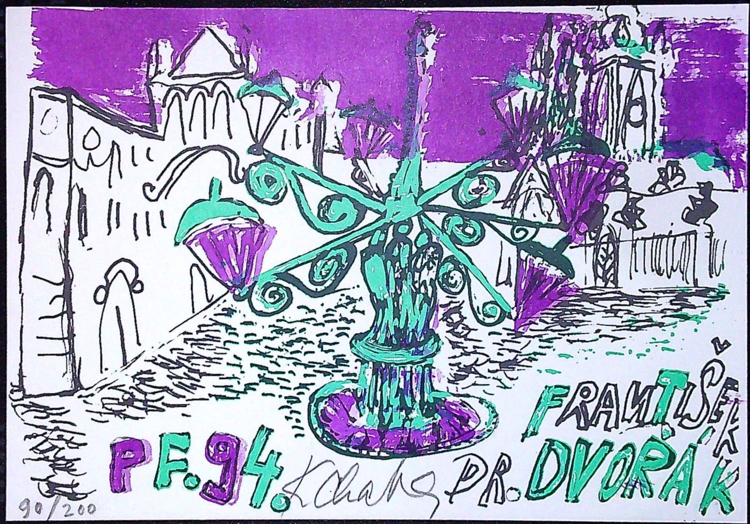 Barevná litografie, vlevo dole číslovaná 90/200 a uprostřed dole autorem tužkou podepsaná, volný list.