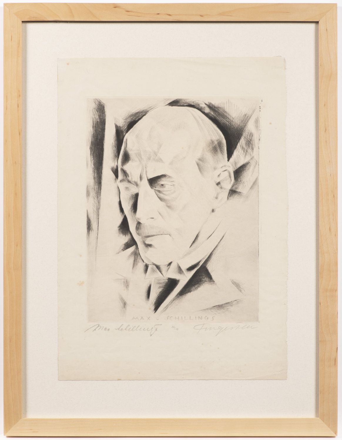 | Původní lept s ruletou o rozměru desky 245 x 185 mm (celý papír 350 x 217 mm), autorem podepsaný vpravo dole, vlevo dole název a uprostřed číslo tisku (34/50). Zarámováno ve světle hnědém přírodním rámu o rozměru 470 x 363 mm bez pasparty.<br> <b>Max von Schillings</b> (19. 4. 1868 Düren v Porýní – 24. 6. 1933 Berlin). Německý skladatel, dirigent a režisér. V letech 1919 – 1925 šéfdirigent Státní opery v Berlíně, od roku 1933 její umělecký ředitel. Byl proti Výmarské republice a pokládal se za antisemitu, od 1. 4. 1933 člen NSDAP. Od roku 1932 president Pruské akademie umění v Berlíně, za jeho vedení byly z akademie vyloučeni všichni židovští a nezávisle se projevující umělci. Jeho osobním přičiněním byli z akademie donuceni odejít Arnold Schönberg a Franz Schreker. |