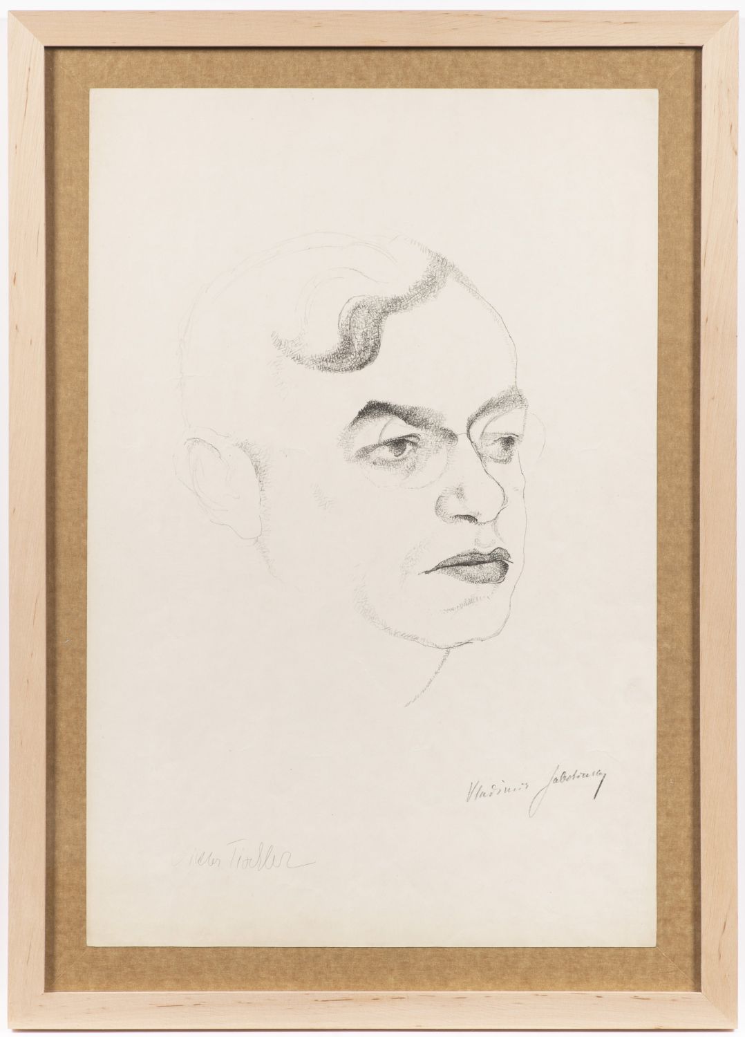 | Původní litografie o rozměru papíru 475 x 312 mm, v desce vpravo dole litografovaný podpis Žabotinského, vlevo dole autorův podpis tužkou. Zarámováno ve světle hnědém přírodním rámu o rozměru 565 x 405 mm bez pasparty.<br> <b>Vladimir Žabotinský</b> (18.10.1880 Oděsa – 4.8.1940 New York), spisovatel, novinář, aktivní bojovník za práva Židů a jeden z nejvýznamnějších sionistických vůdců 20. století. Vystudoval práva na universitě v Římě. Po velkém pogromu v Kišiněvě roku 1903 založil tajnou židovskou organizaci v Oděse na obranu před dalšími možnými pogromy. Vydával noviny v ruštině, jidiš a hebrejštině. Byl zakladatelem a vůdcem tajné národní židovské vojenské organizace Irgun. Roku 1964 byly jeho ostatky pohřbeny na Herzlově hoře v Jeruzalémě. |