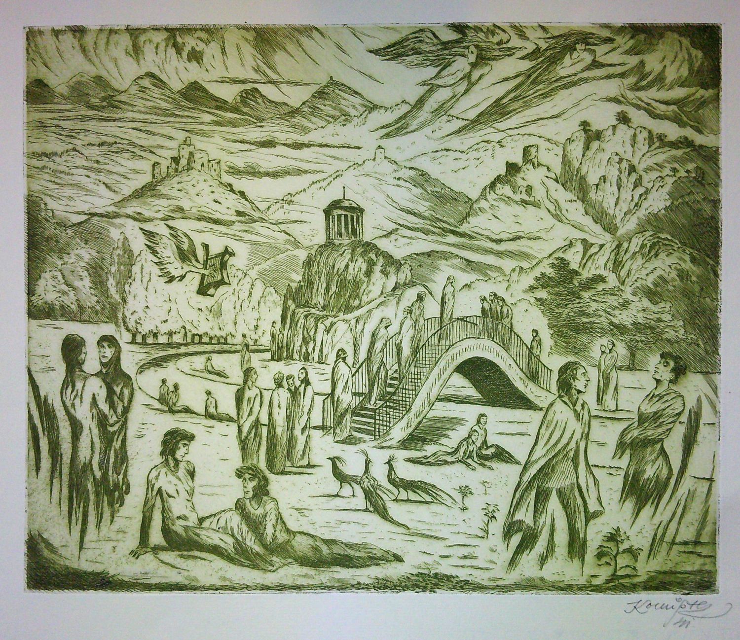 | Původní blept tištěný na holandském ručním papíře "Pannekoek" s filigránem, volný list vpravo dole pod deskou autorem tužkou podepsaný a datovaný, vlevo dole při vnějším okraji tužkou název a datace. |