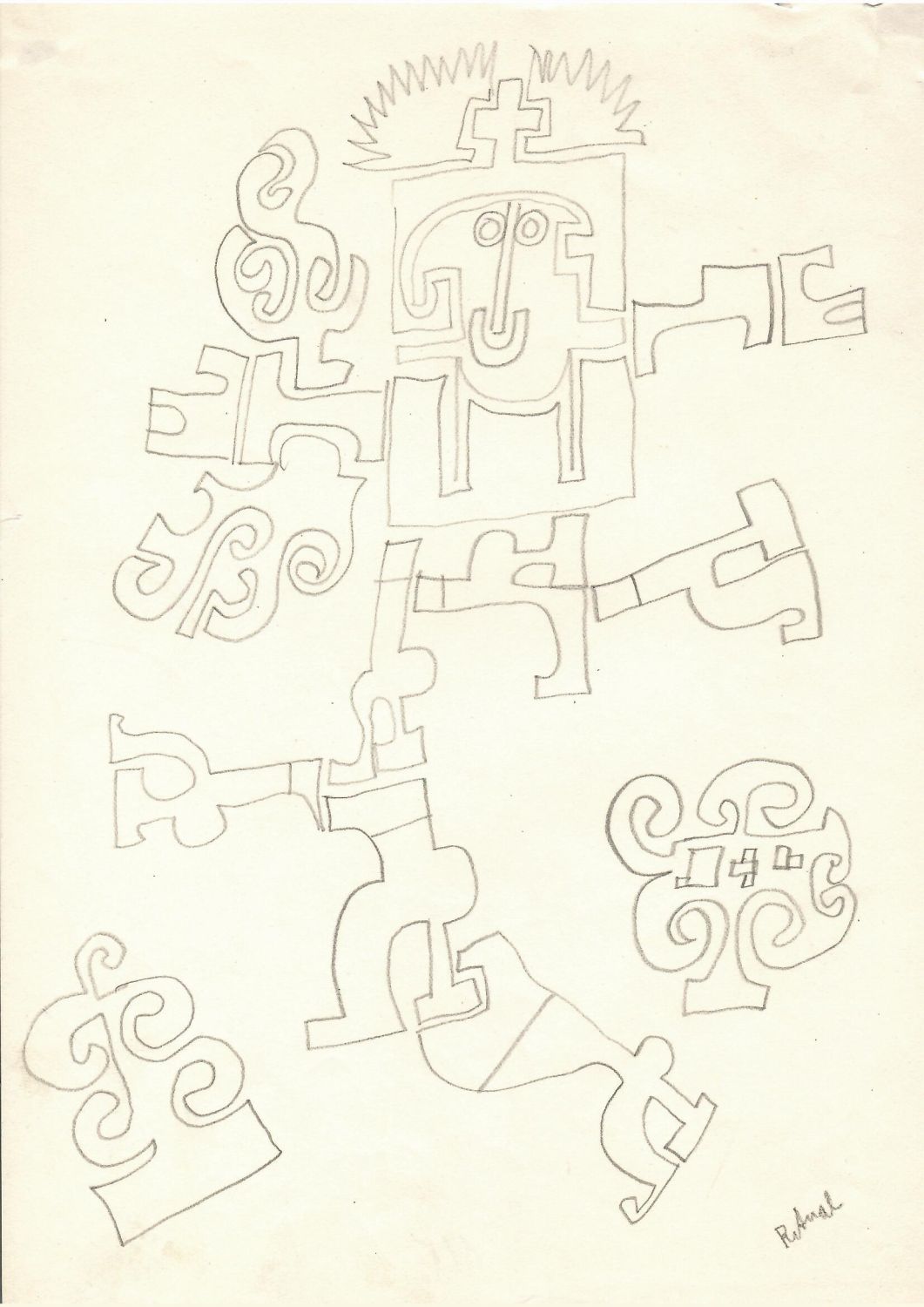 | Kresba tužkou, v pravém spodním rohu napsán název kresby. Na zadní straně v obou horních rozích stopy po předchozí adjustaci. |
