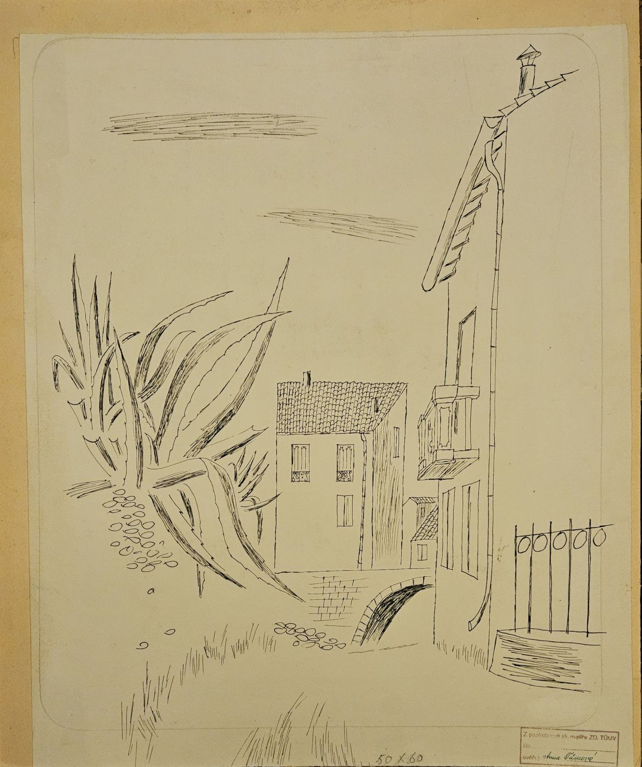 | Perokresba na bílém papíře, který je podlepen podkladovým kartonem (původní autorova adjustace), při pravém spodním okraji pod kresbou pozůstalostní razítko s ověřením a podpisem malířovy matky Anny Tůmové. Na rubu při levém horním okraji autorův podpis tužkou, datace a název. Provenience: dílo bylo zakoupeno galerií Ztichlá klika od autorovy sestry Doc. Zity Miřatské - Tůmové. |