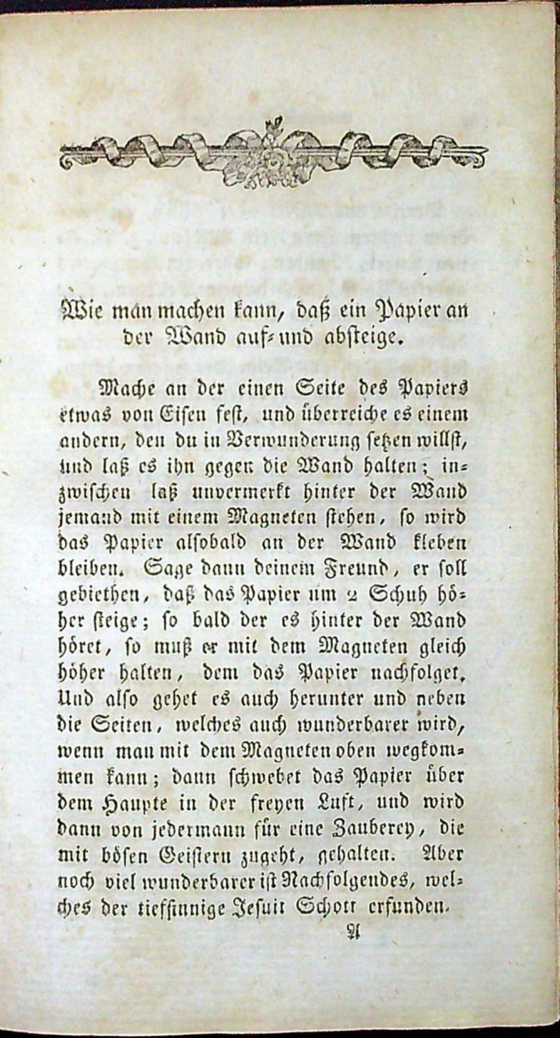 Kunst und Wunderbuch, oder verborgene Geheimnisse, welche ein sterbender Vater seinen Kindern übergeben. Darinnen aus Natur und Kunst selbst erprobte öconomische=medicinische, sympathetische und antipathetische Geheimnisse enthalten sind. Mit grösser Mühe und Fleiß zusammen geschrieben, und zum einigen Nutzen aufbewahrer, nun aber auf Verlangen meiner Freunde durch den öffentlichen Druck gemeinnützig gemachet, und herausgegeben worden von A. R. (II. Theil ?)